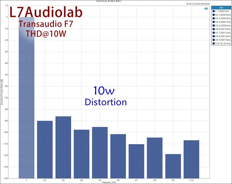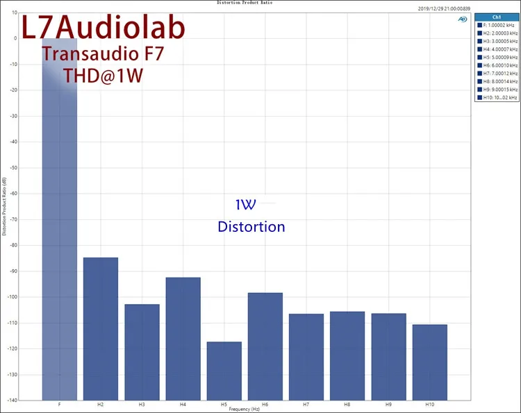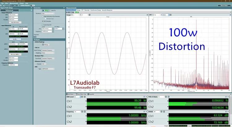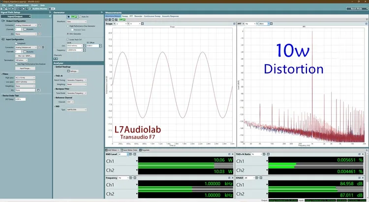 Ультра-низкое искажение, когда выход 32,8 в (с нагрузкой 8 Ом, выходом 135 Вт), искажение 0.003%
