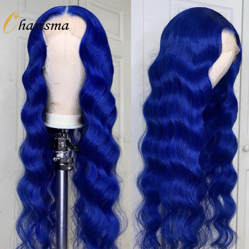 Charisma Synthetic Lace Front Wig Long Soft Body Wave With Baby Hair Blue Wig Middle Part Heat Resistant Lace Wig For Women
