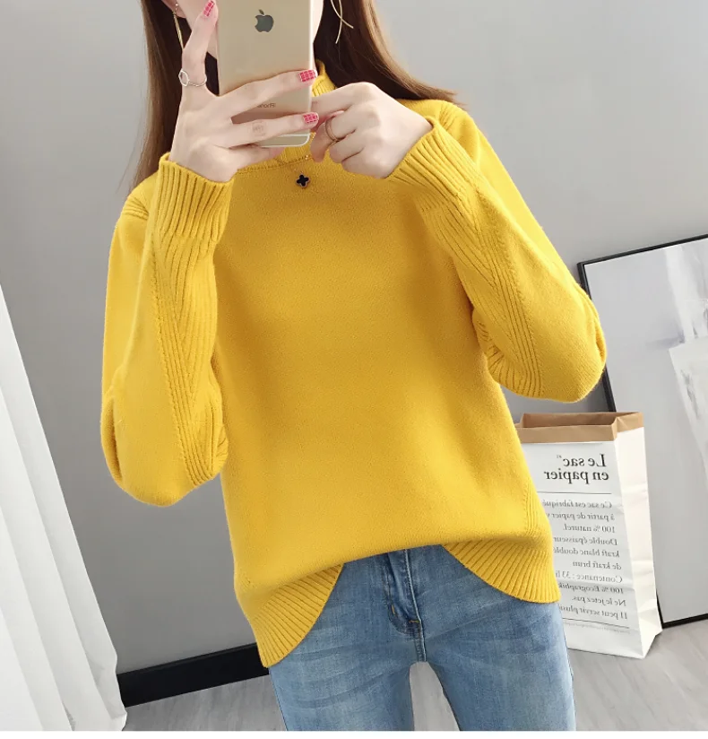 Женские пуловеры с воротником-хомутом и сердечками милые модные свободные