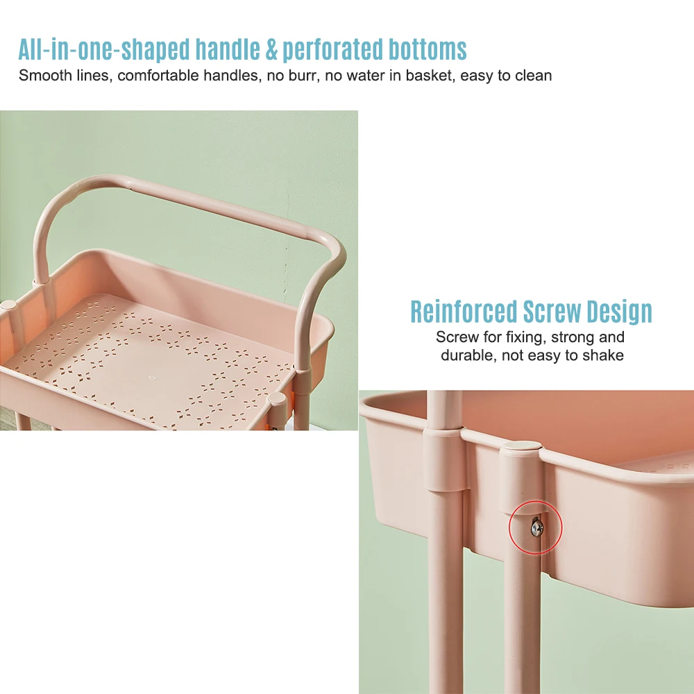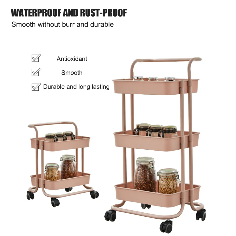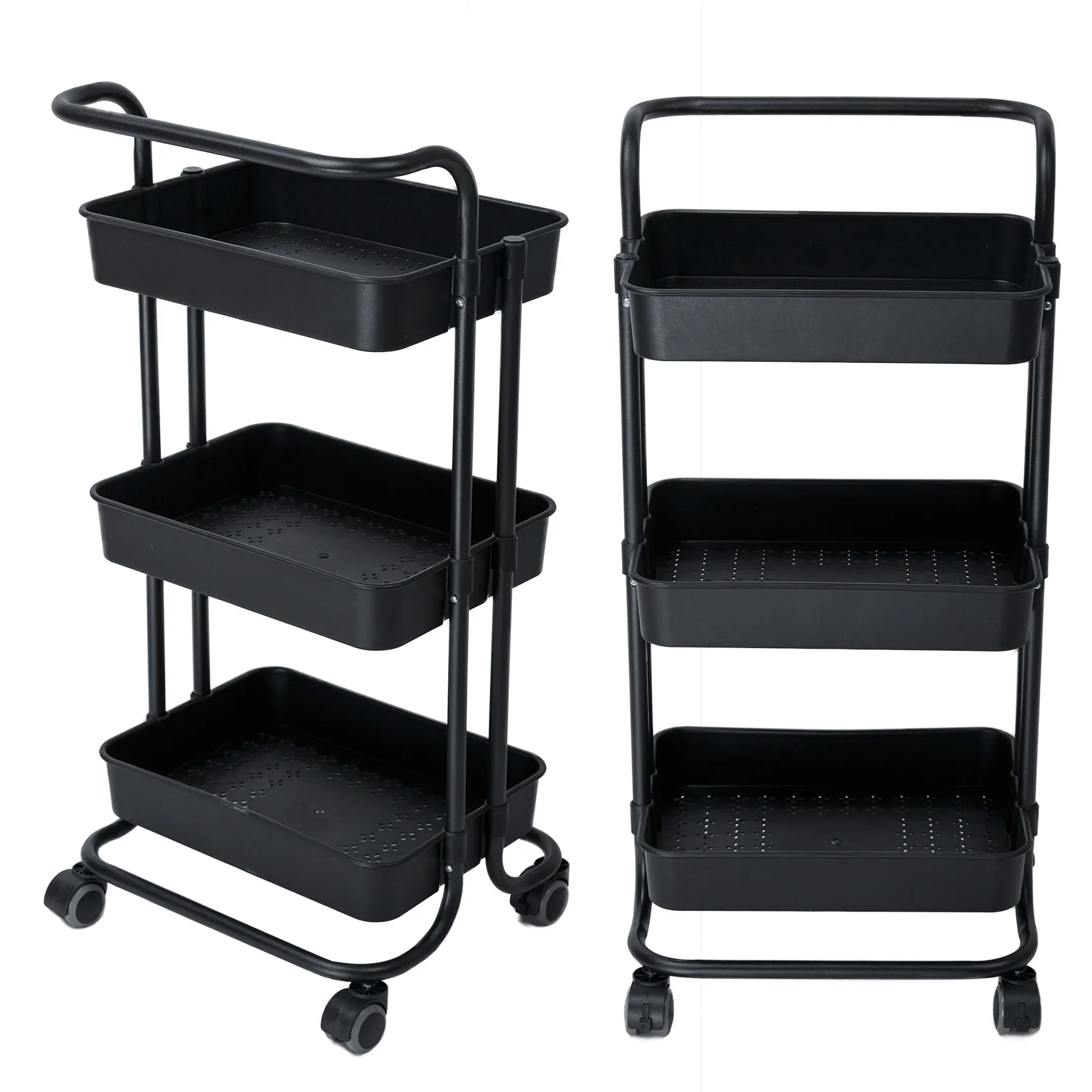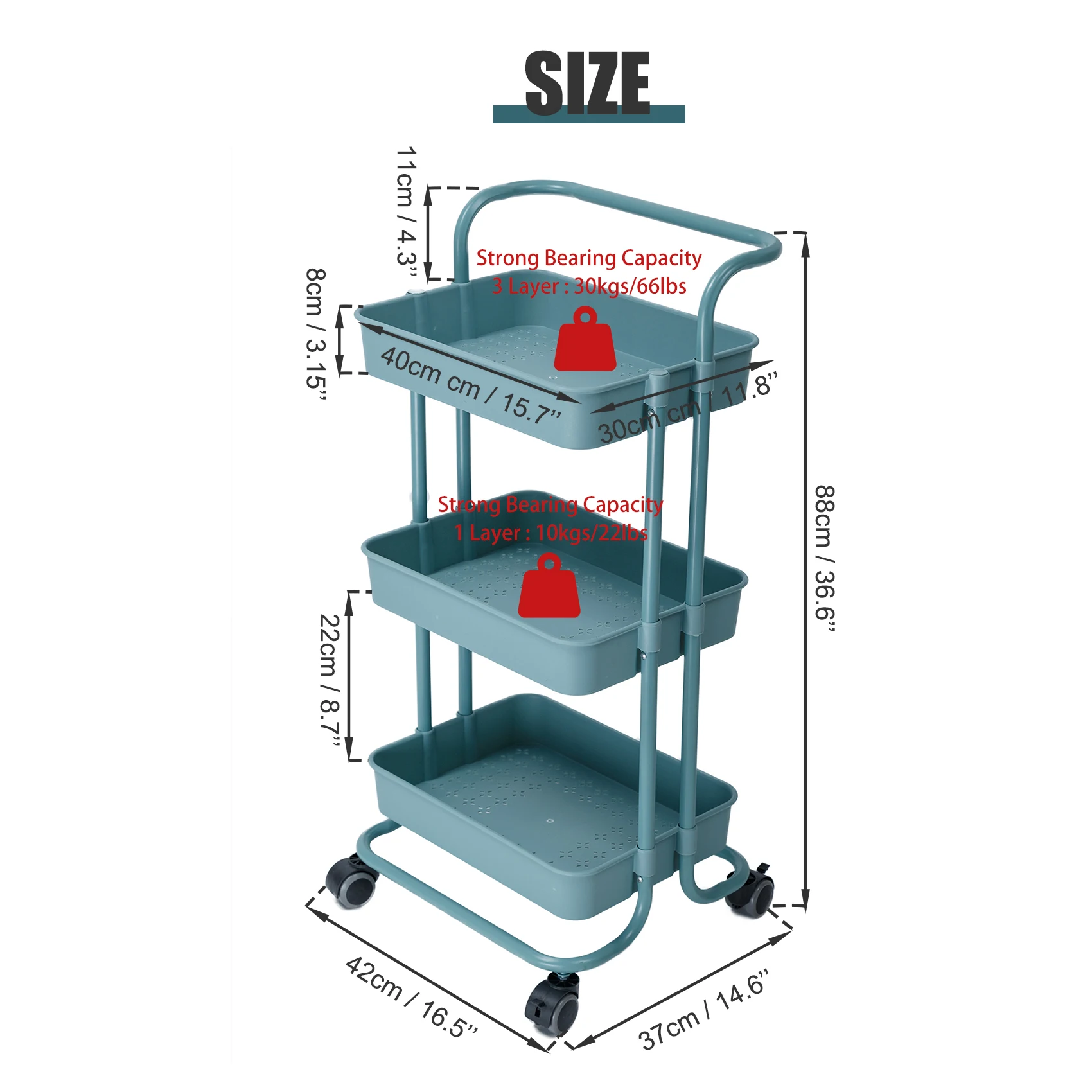 Эта тележка сделана из толстой стальной рамы и пластика. Прочная несущая способность и долговечность. С 3-х уровневая большой ящик для хранения, перфорированная нижняя часть, это позволяет для многочисленных возможности хранения. Подвижный и запираемый, с ручками, колесиками, его можно использовать на кухне, спальне и так далее.