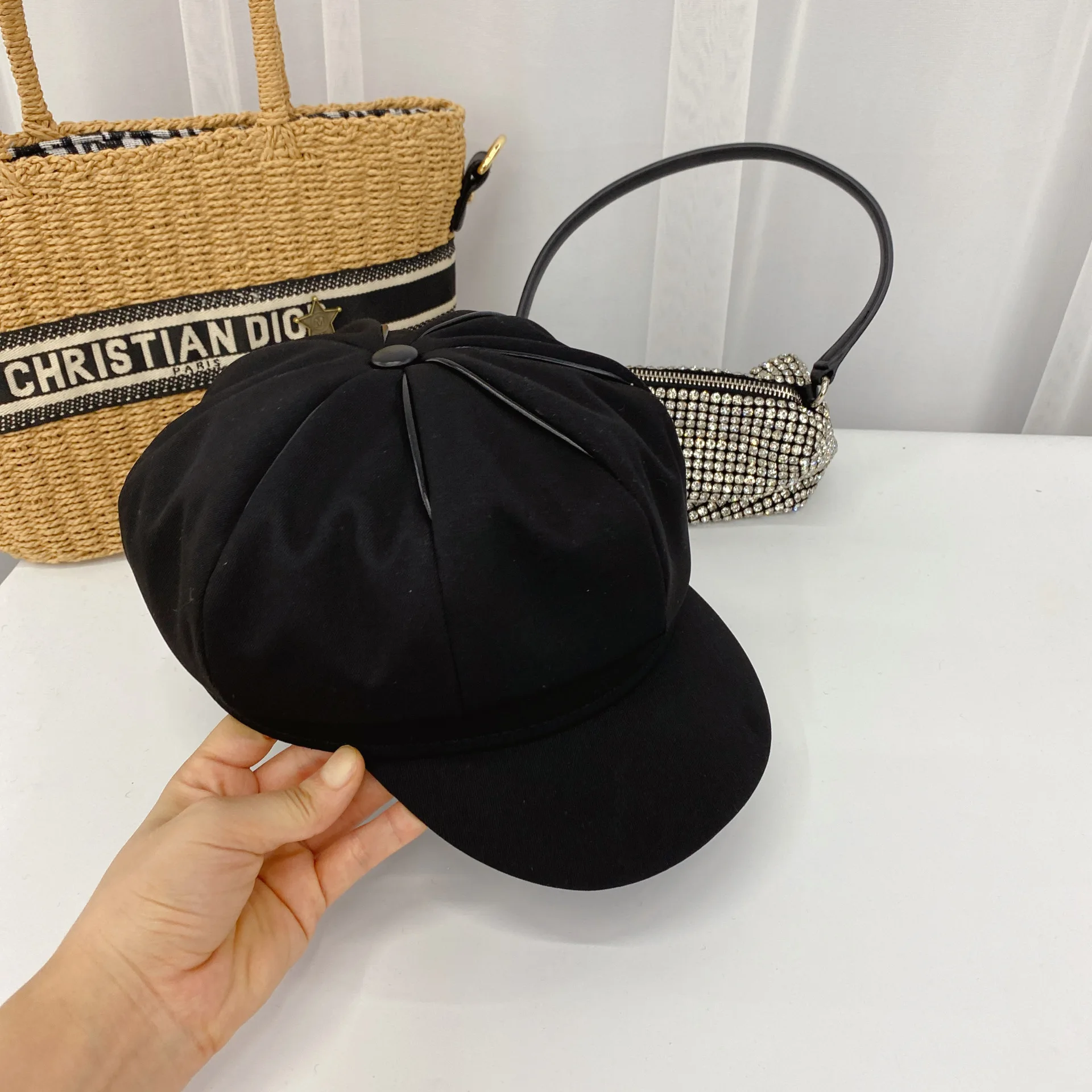 Bere Hat Female Autumn and Winter England Retro Tide Painter Octagonal Hat Black Wild Pumpkin Hat