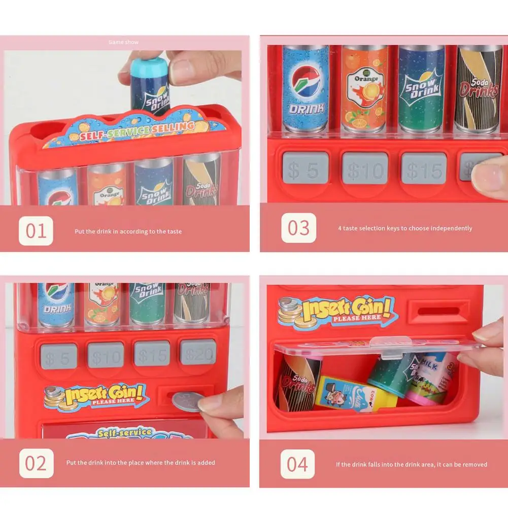 3. Простая операция: чтобы испытать процесс покупок, дети могут вставить монеты в слот для монет, выбрать напиток, и напиток выйдет. Простая операция улучшает знания и практические навыки покупок для детей.