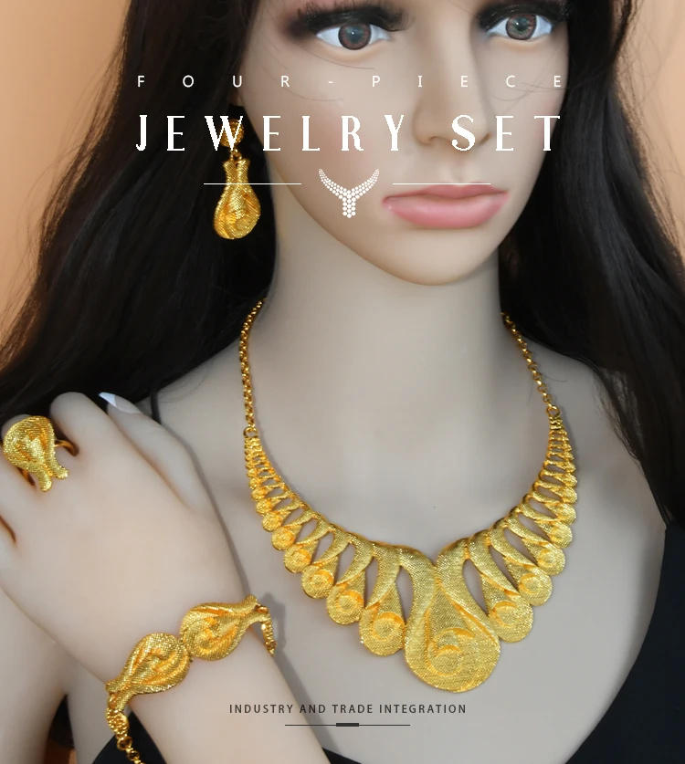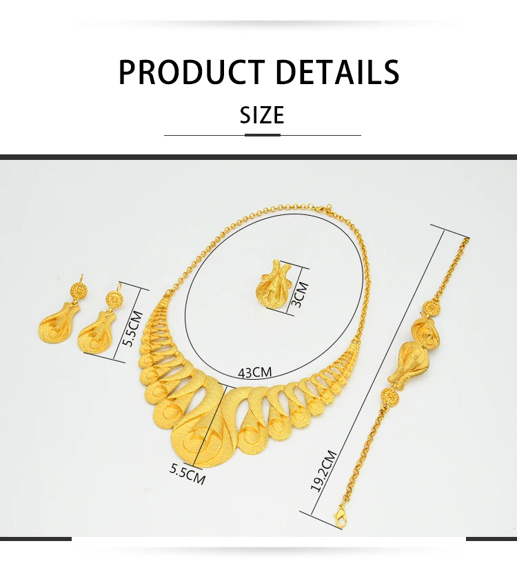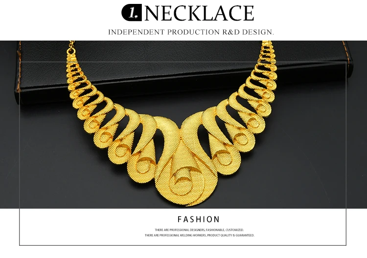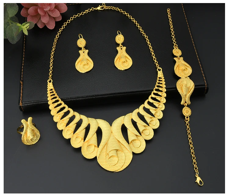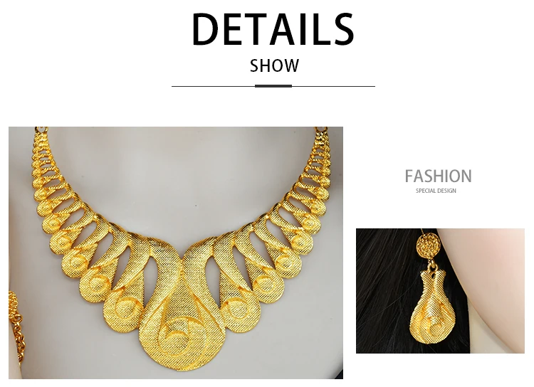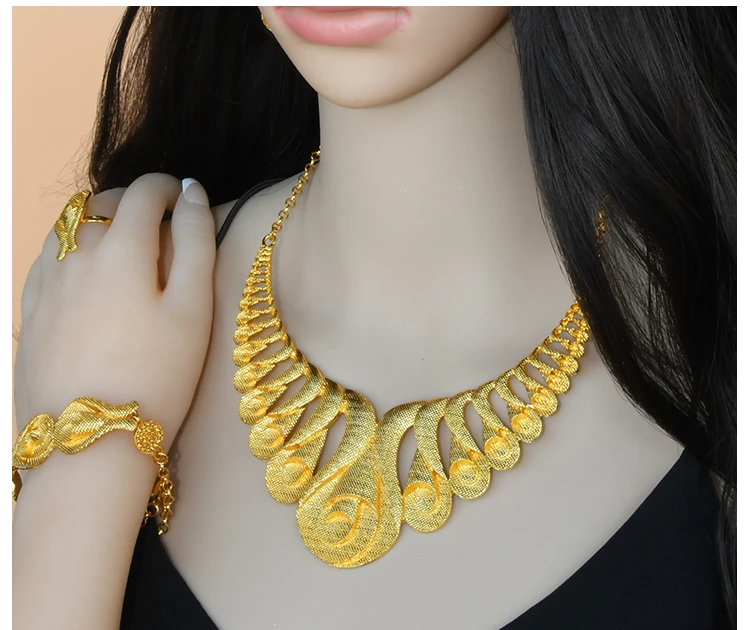Золотое ювелирное ожерелье набор Дубай позолоченный набор украшений для женщин Африканское ожерелье и серьги набор нигерийские Свадебные украшения