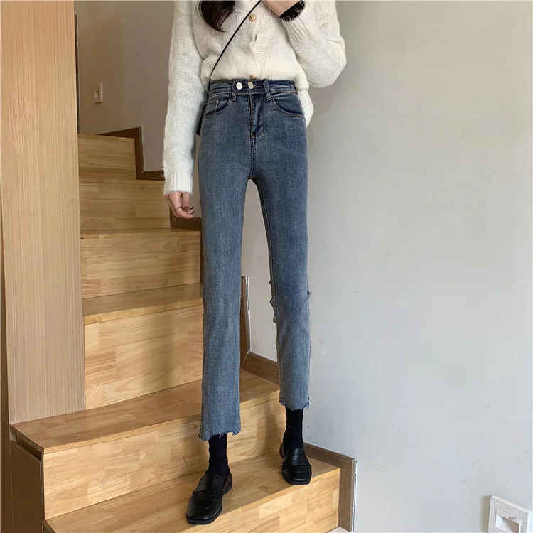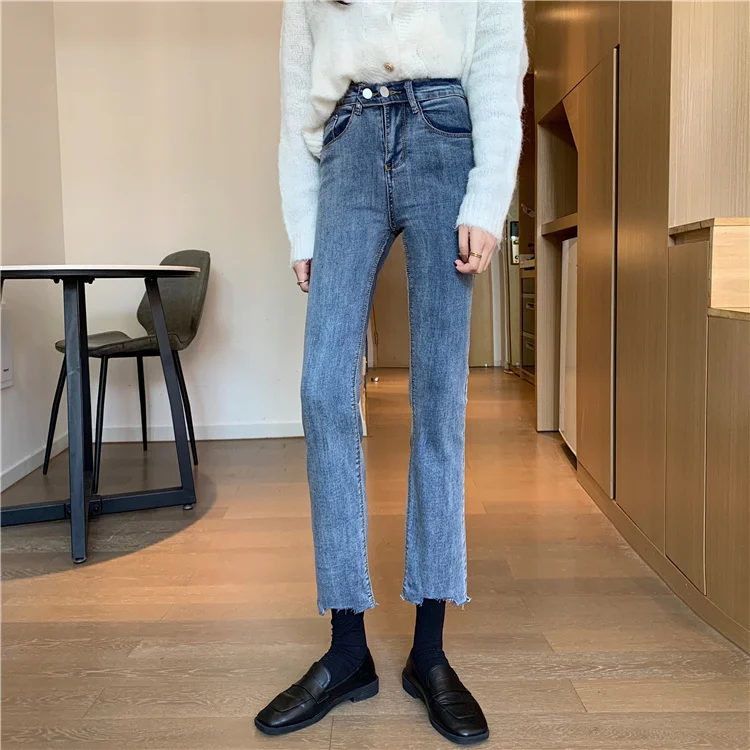 | Облегающие джинсы с высокой талией, женские осенние брюки, новинка 2021, узкие брюки, брюки-карандаш | |