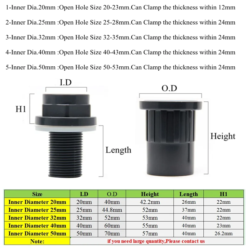 Внутренний диаметр: 20 мм, 25 мм, 32 мм, 40 мм, 50 мм