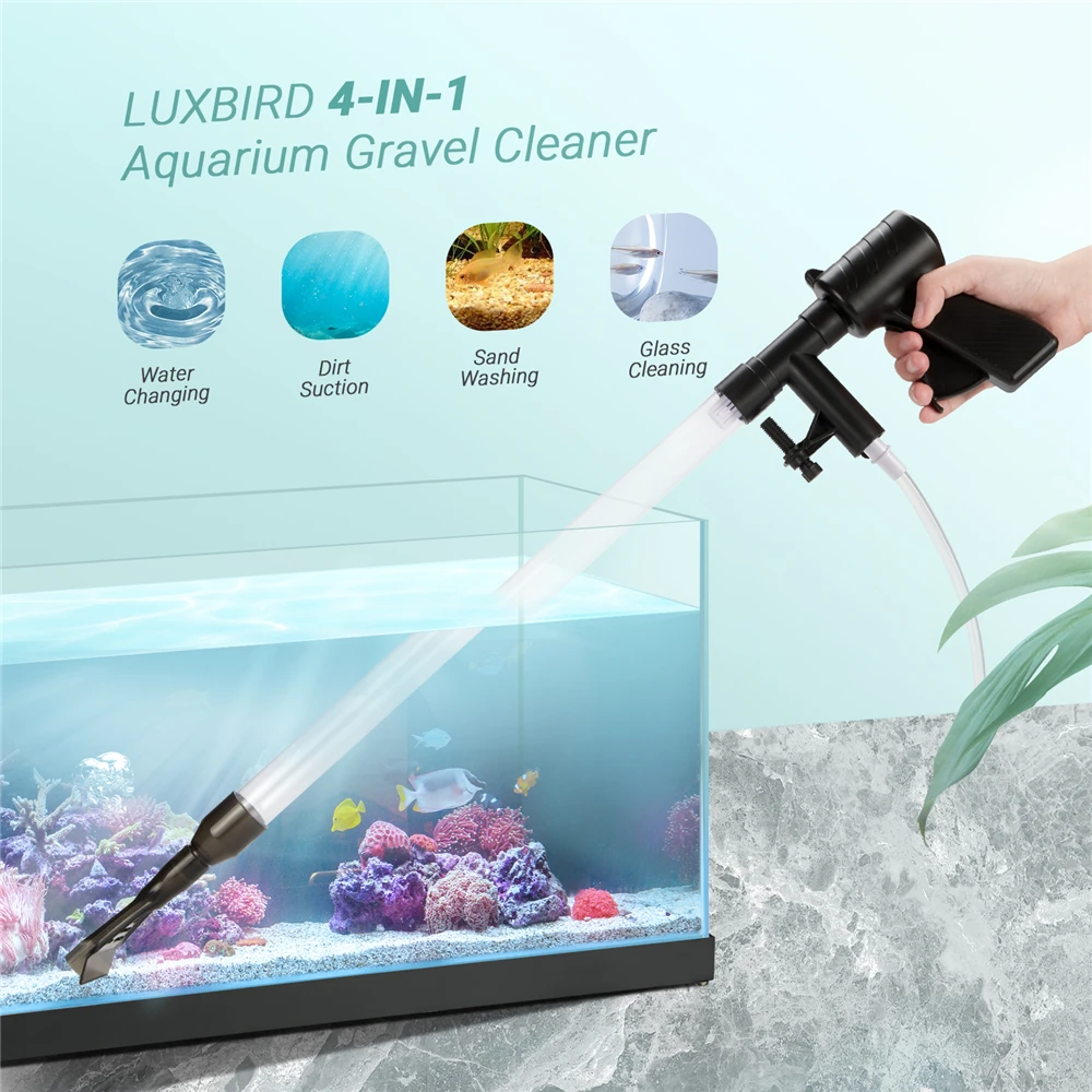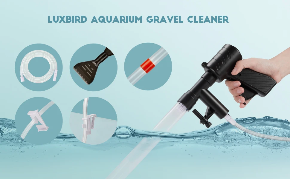 Набор для очистки гравия LUXBIRDAquarium, быстросменный аппарат для воды с кнопкой нажатия на воздух, средство для чистки от песка, аквариумный сифон, пылесос с контроллером водяного шланга
