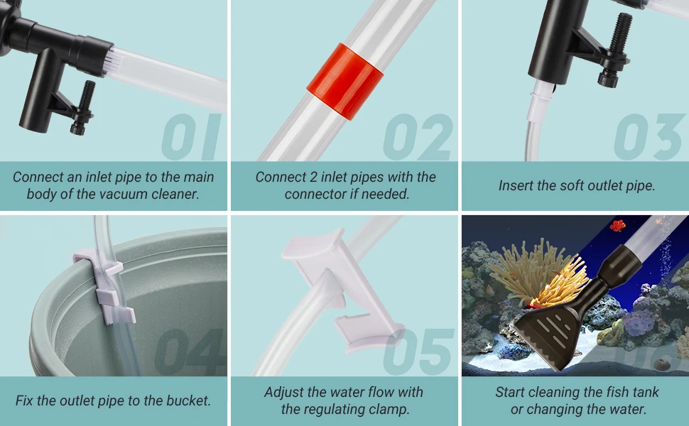 ✔Широкое применение:Очиститель гравия идеально подходит для аквариумов различных размеров. С 2 предоставленными 2 входными трубами и соединителем трубы, вы можете собрать и отрегулировать длину трубы в соответствии с размером аквариума.