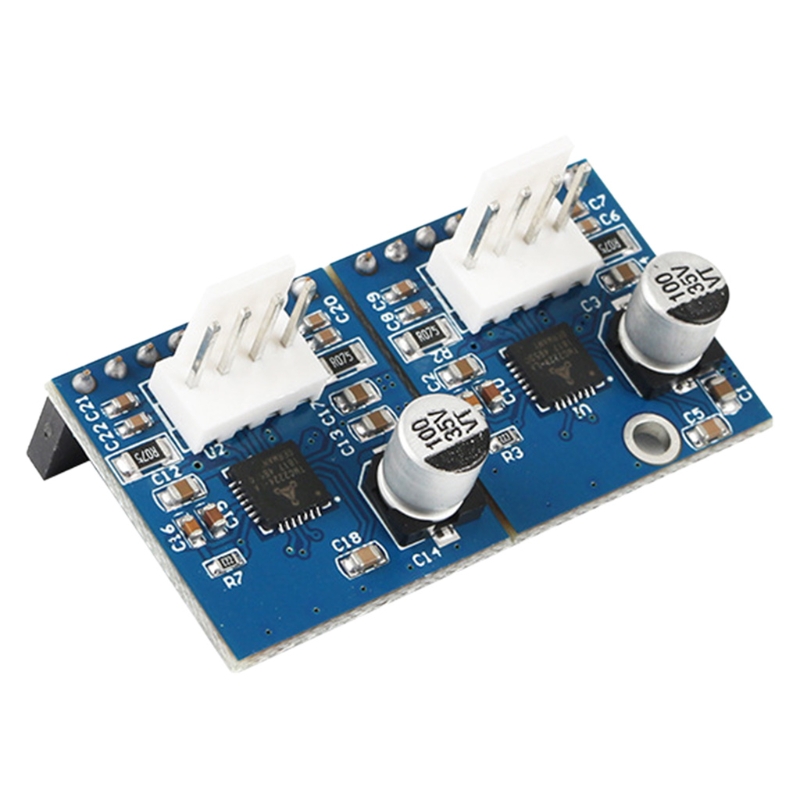 It provides two more TMC2224 stepper drivers with up to 256 microstepping.