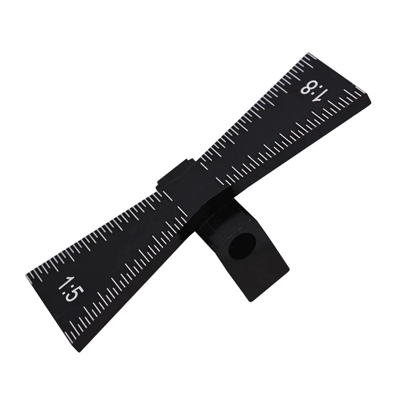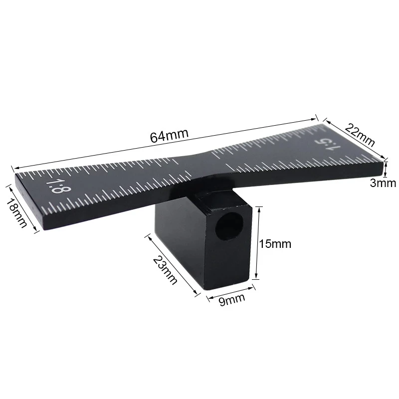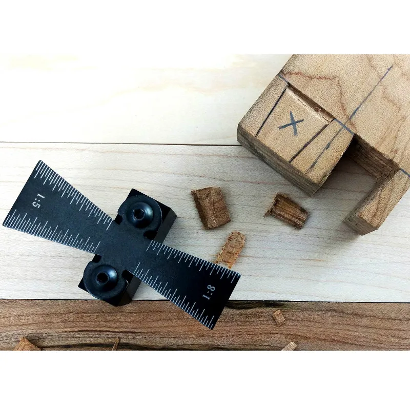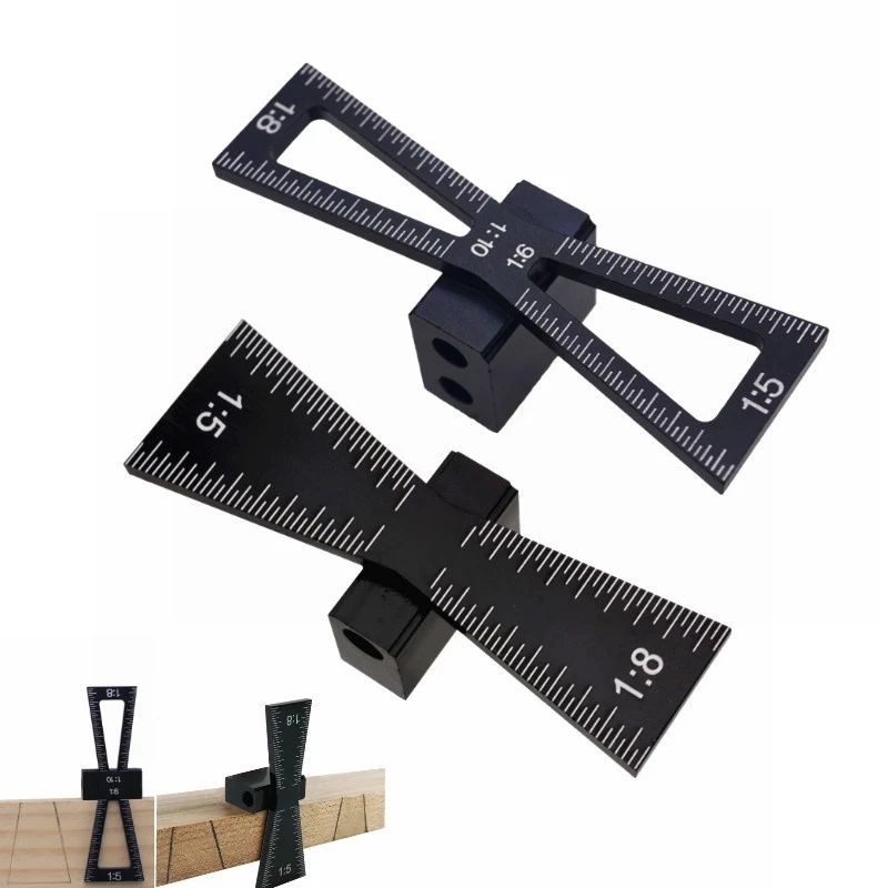The marker is capable of marking a dovetail 1" in length and has two ratios of width to height of 1:5 and 1:8 The 1;5 ratio is typically used in softwood and the 1:8.