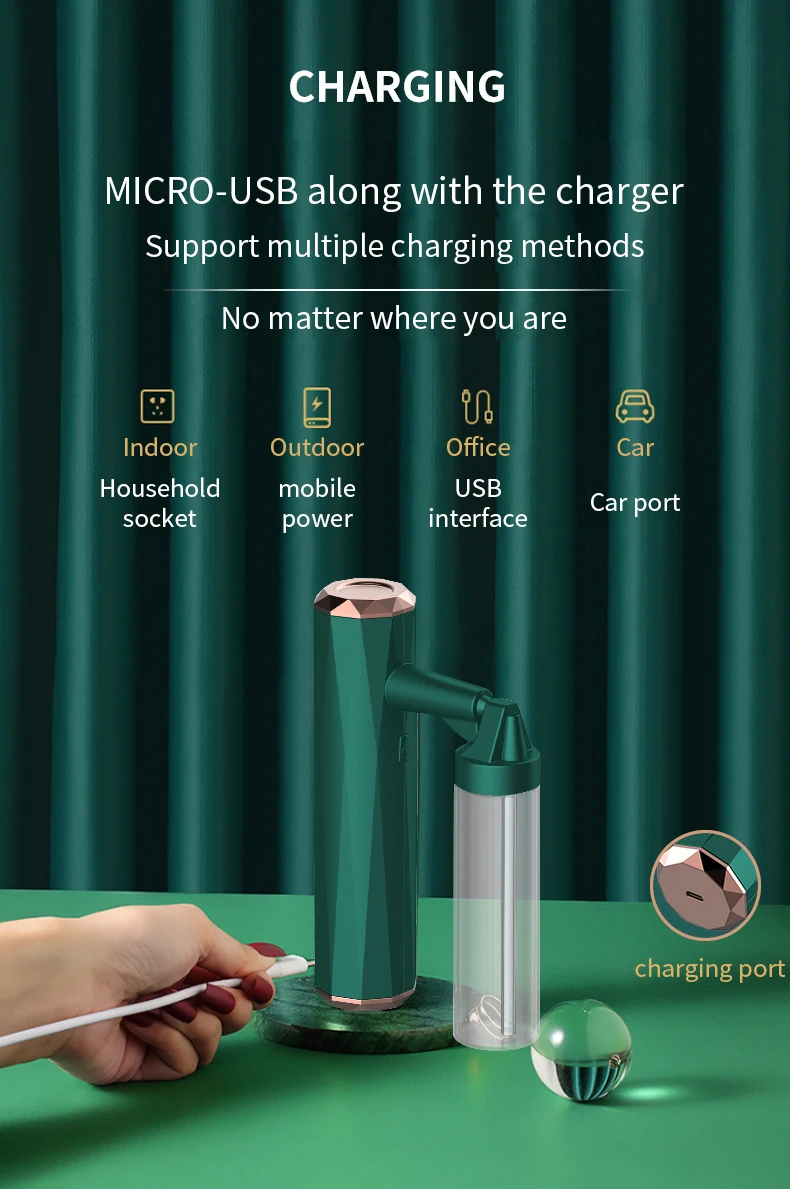 Зарядка USB on-the-go поддерживает различные методы зарядки. Независимо от того, где вы находитесь, он поддерживает бытовые розетки, мобильные источники питания, usb-зарядку, автомобильные порты, и он используется для впрыска кислорода в любое время.