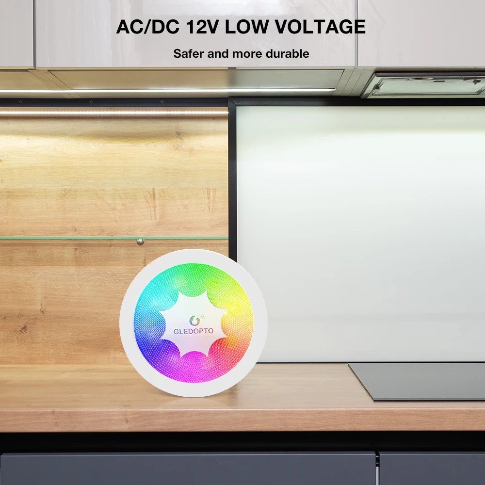 Срок службы: 50000 часовМаксимальный диаметр: 49,5 ммМаксимальная длина: 54 ммЦветовая температура: RGB + CCT(2200-6500K)Световой поток: 250 лм-300 лмСветоотдача: 90 лм/ВтCRI: >80