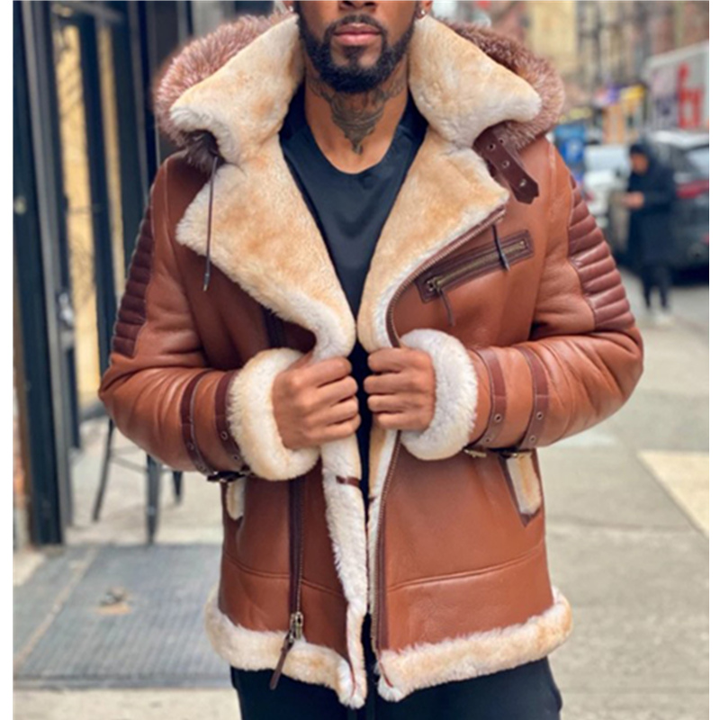Mandylandy зимние теплые куртки с длинным рукавом из искусственного меха, мужские пальто, винтажные шерстяные пальто с отложным воротником, Мужская модная уличная одеждаUS $34,97 /