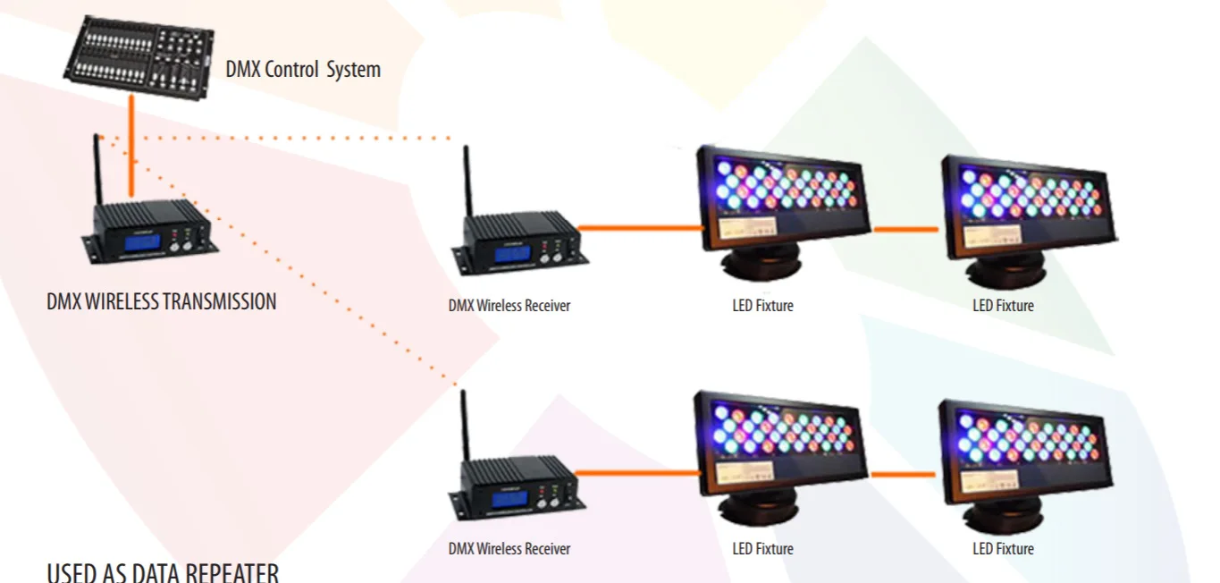 Беспроводной приемопередатчик DMX512 Беспроводная передача стандартных данных консоли DMX512, а также ламп и фонарей