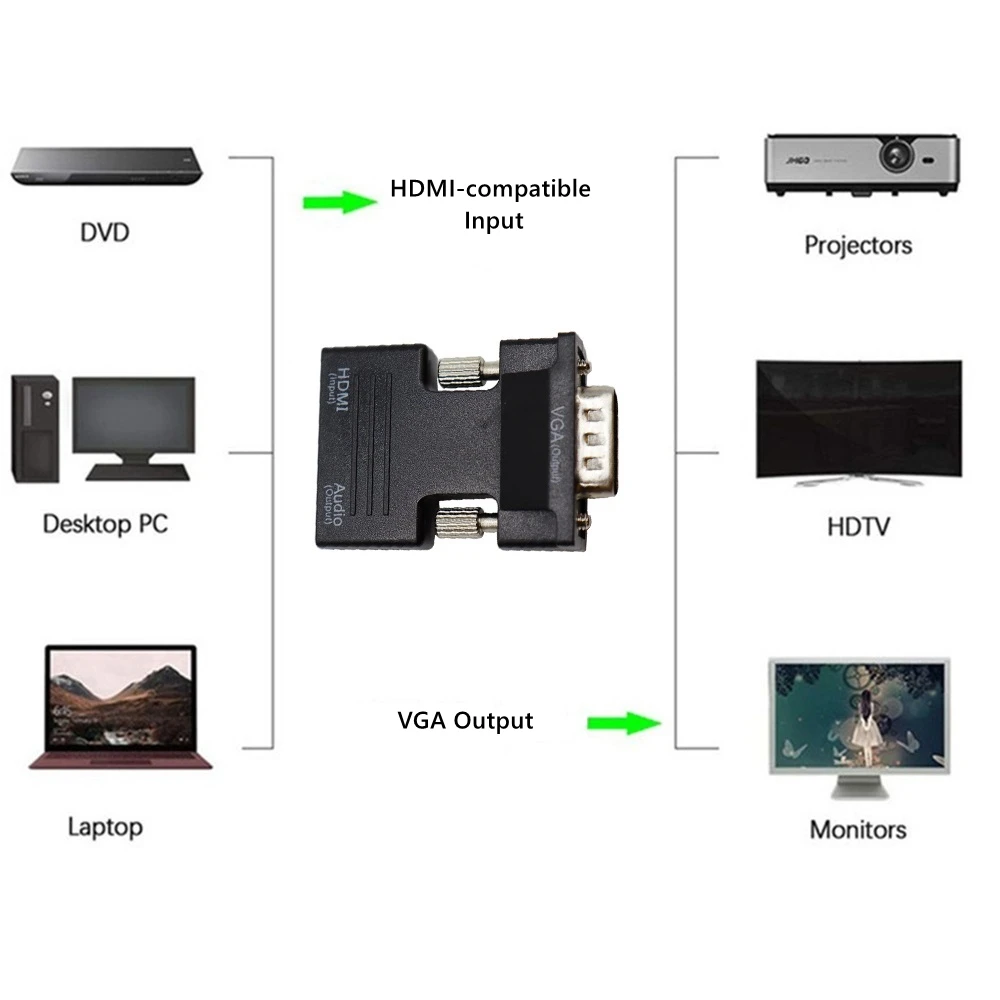 HDMI-совместимый сигнал полностью преобразуется в VGA видео