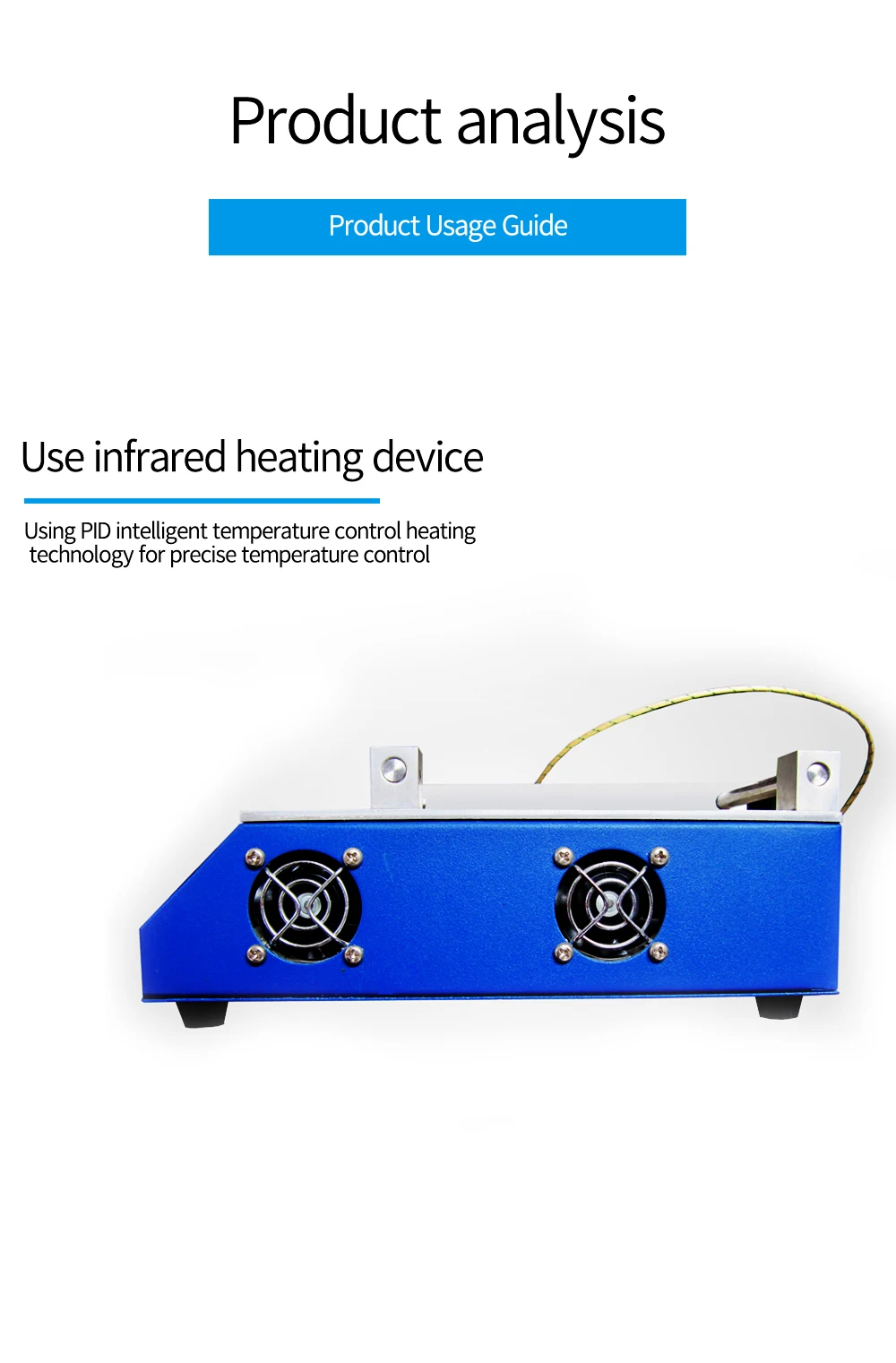 1. Машина использует самостоятельно разработанные инфракрасные высокоэффективные нагревательные устройства и использует передовую PID интеллектуальную технологию контроля температуры и нагрева для точного контроля температуры.