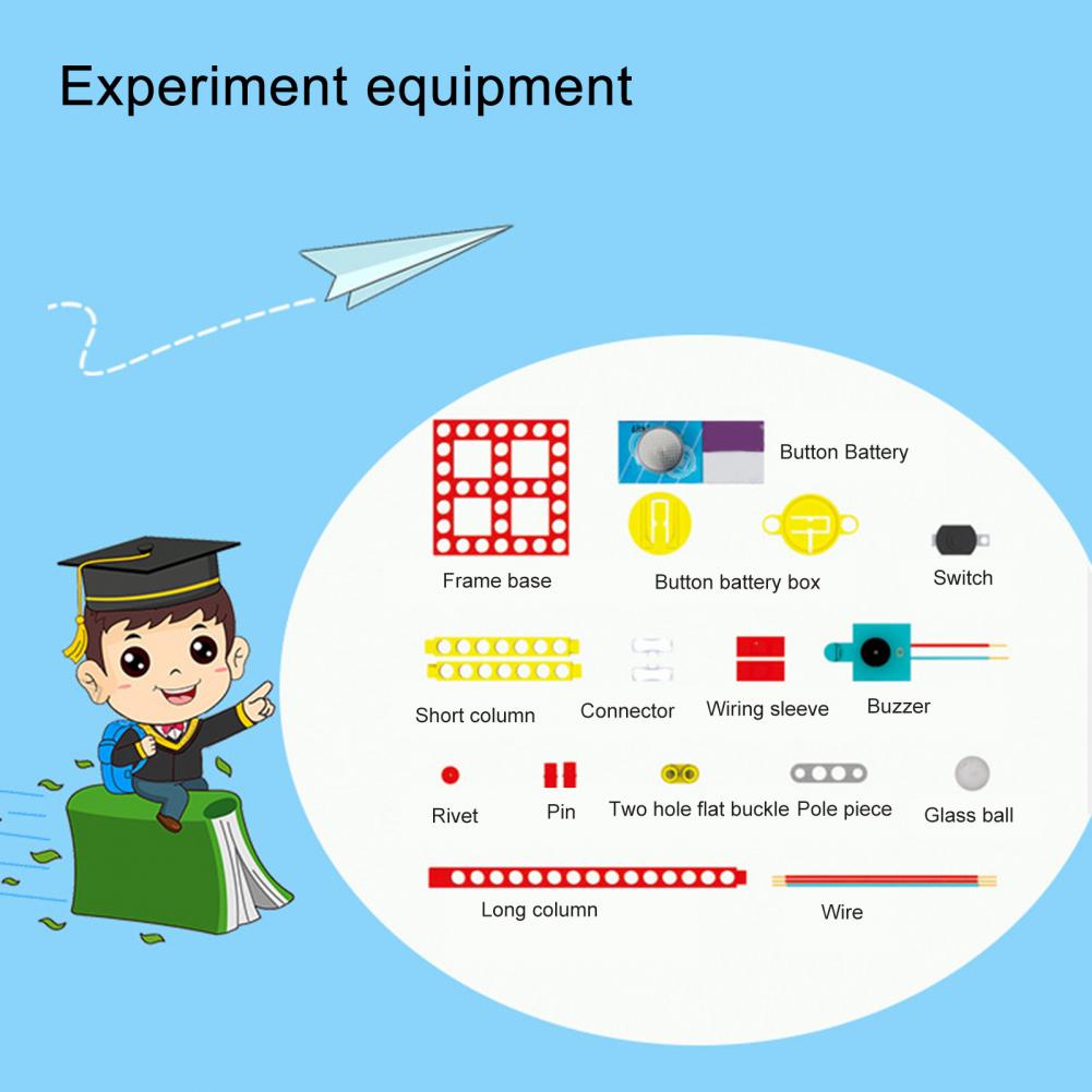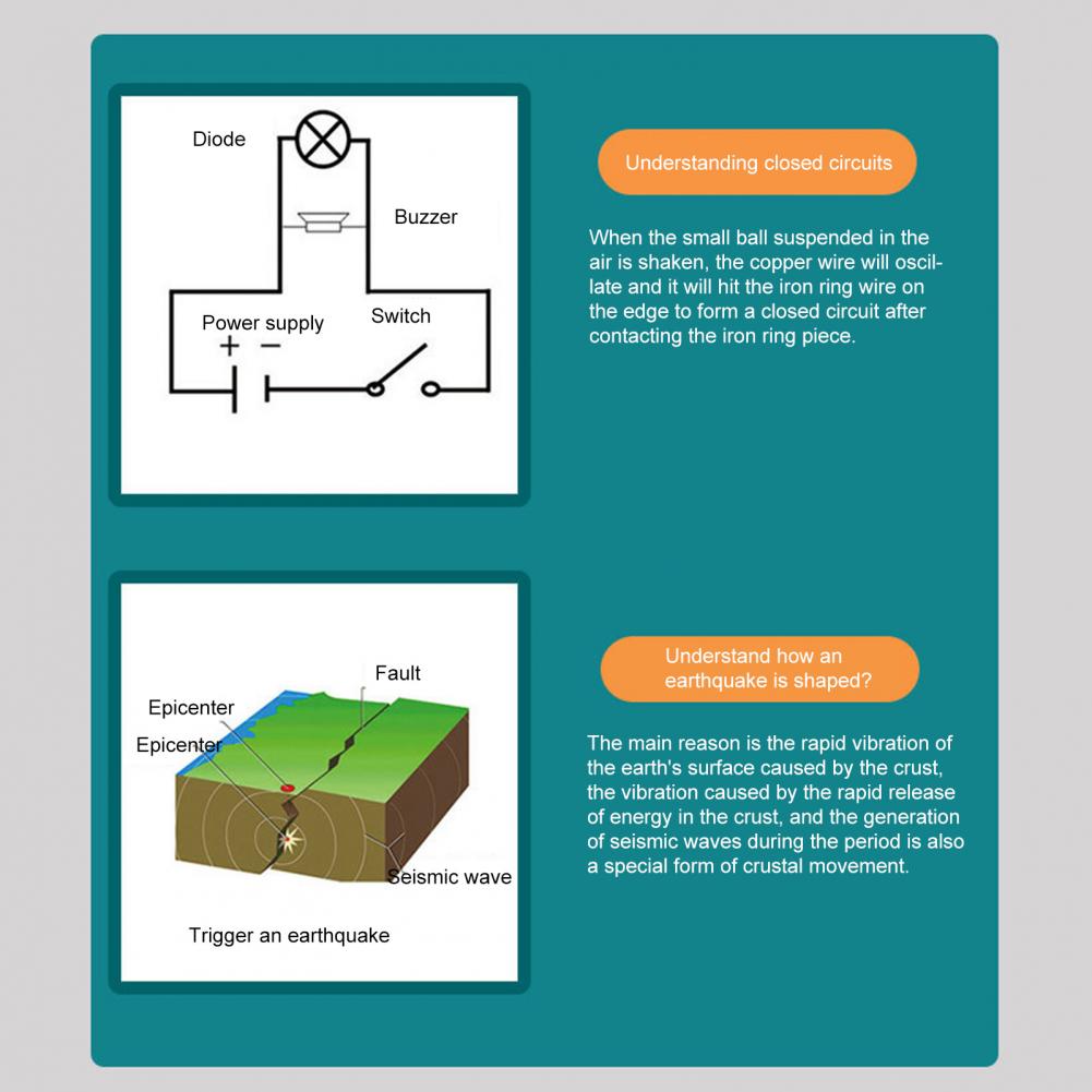 1 Набор игрушек датчик землетрясения (в комплекте: квадратное основание, Кнопочная батарея, Кнопочная Батарейная коробка, переключатель, короткая колонка, разъем, соединительная муфта, зуммер, заклепка, штифт, плоская кнопка с двумя отверстиями, плоская кнопка полюс кусок, стеклянный шар, длинный провод колонки)