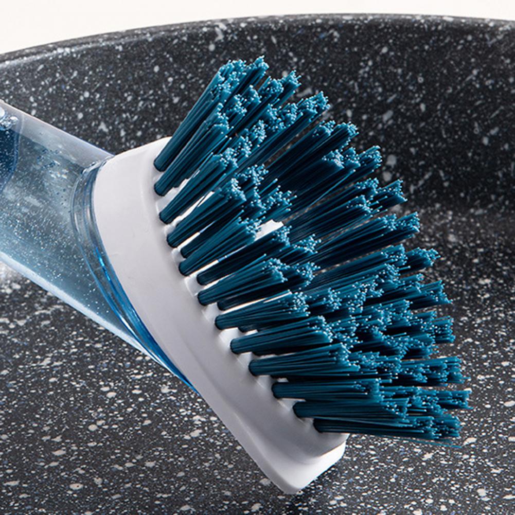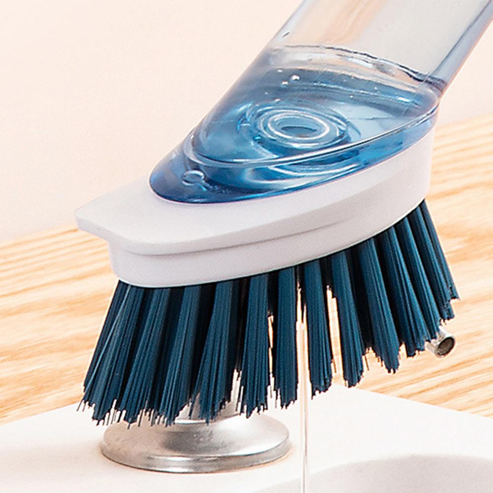 Чистящая щетка поставляется с пластиковым баком, содержащим чистящую жидкость, чтобы вы могли нажать кнопку, чтобы выпустить чистящую жидкость.