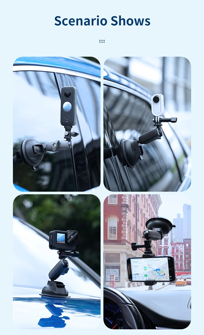 Телесин автомобильный держатель телефона на присоске 360 ° регулируемый 1/4 Стандартный Адаптер для GoPro; Размеры 9 и 10 Insta360 Osmo камера SJCAM мобильный телефон