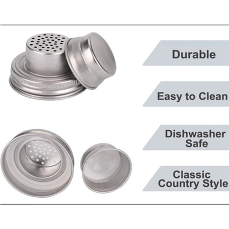 Качество: изготовлен из нержавеющей стали 304, достаточно прочный. С силиконовой прокладкой и пластинами для герметизации пищевых продуктов, шейкер для коктейлей для стандартного рта Мейсона соответствует требованиям FDA и BPA free и безопасна для посудомоечной машины. Превратите банки Мейсона в шейкер для коктейлей, прокладка гарантирует, что она не протекает при встряхивании.