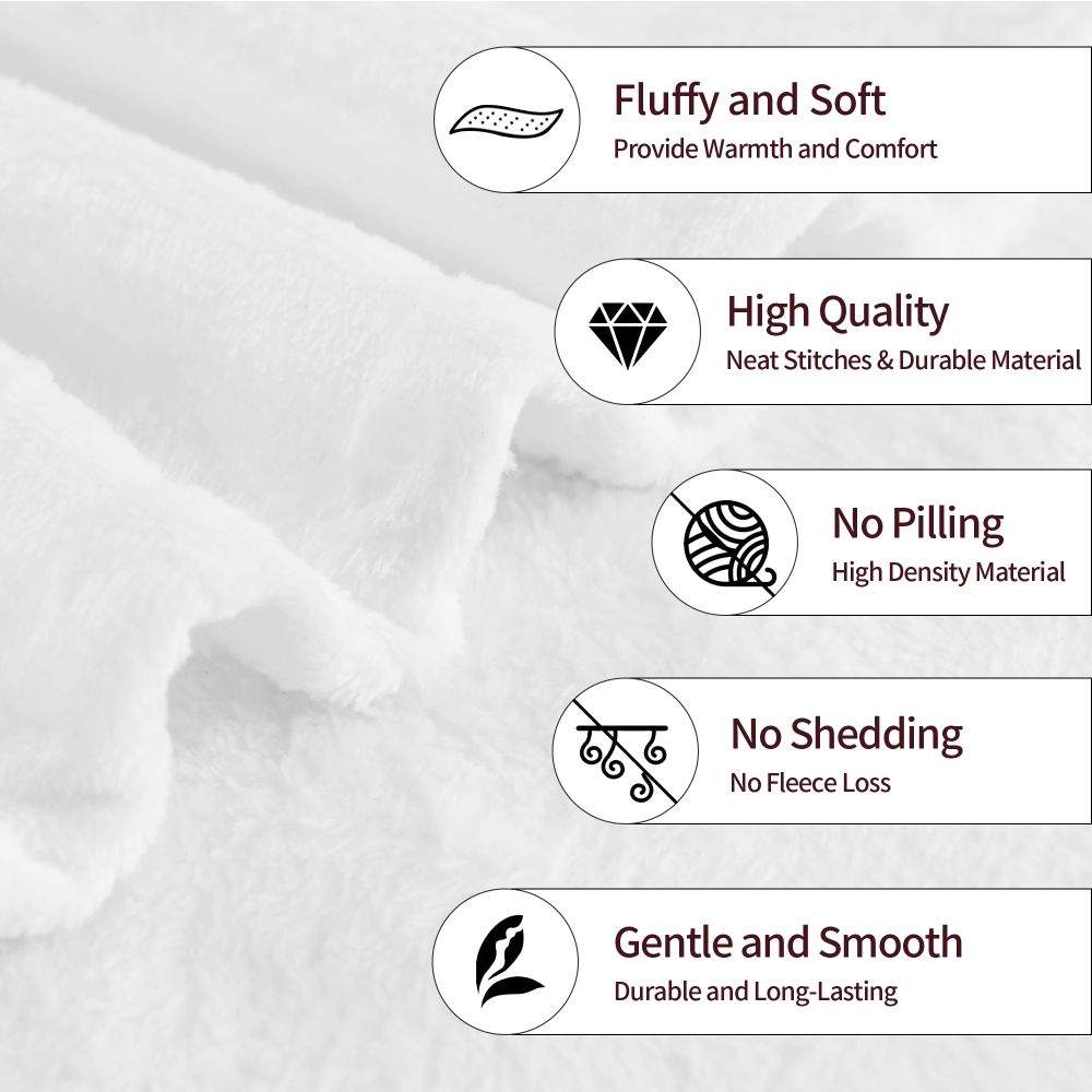 Does not absorb any moisture. Lightweight, durable, and can be folded compactly. Super soft and feels great. Completely resist shrinkage and wrinkles. Our blanket has a velvety fuzzy feeling, soft touch, anti-pilling, anti-wrinkle, anti-allergic, and non-shedding characteristics. Very suitable for those who are prone to allergies and asthma!