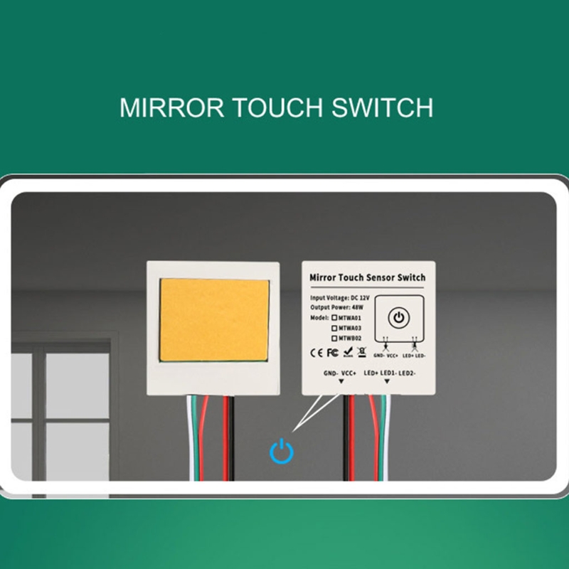 После установки выключателя аксессуары переключателя не могут быть видны на передней части зеркала, но сенсорные знаки, отображаемые на подсветке, могут быть видны.
