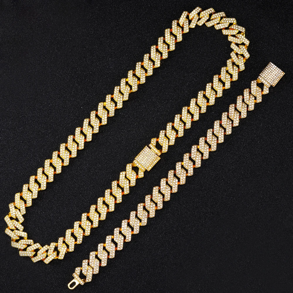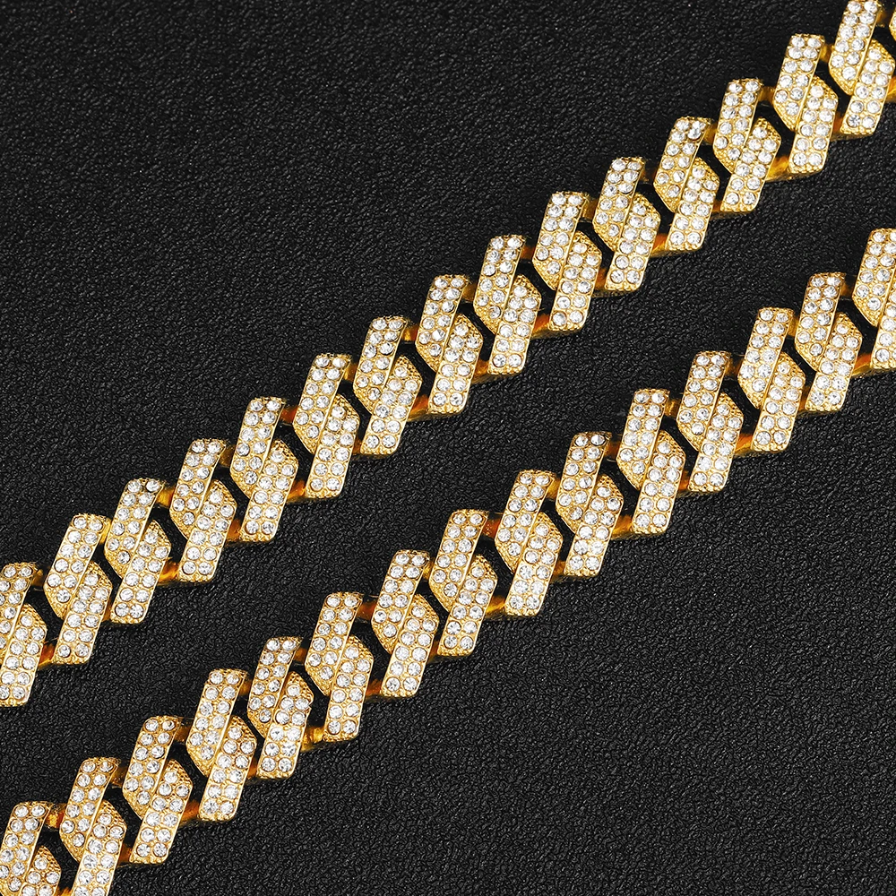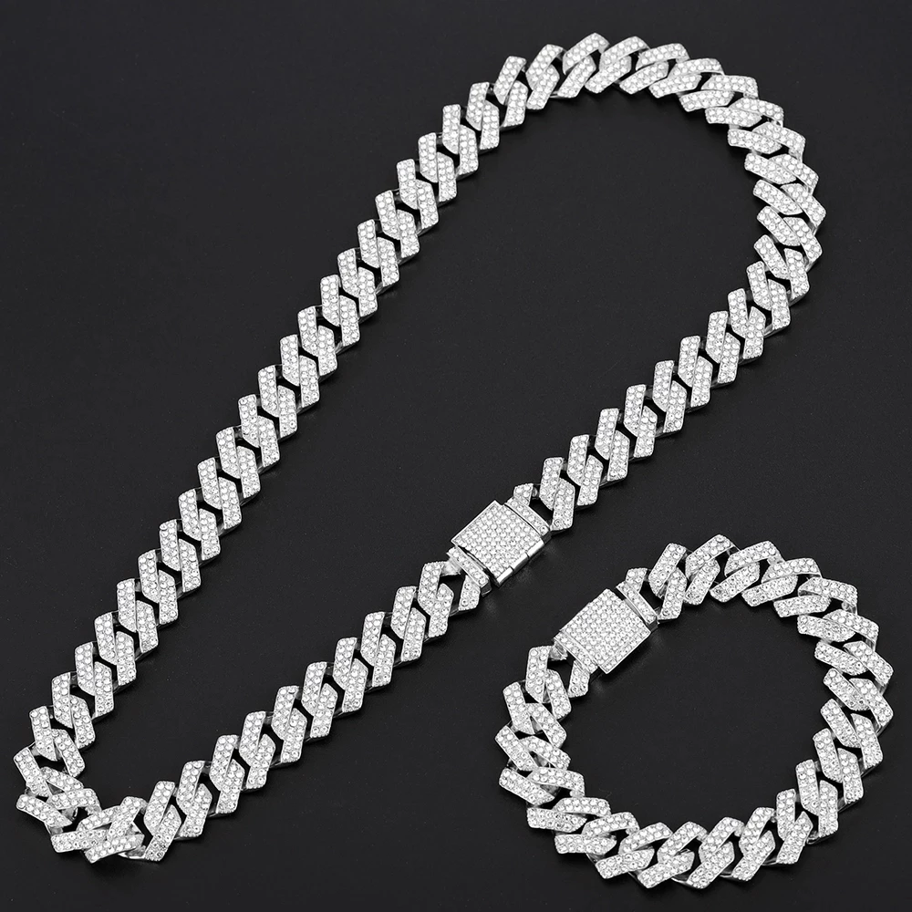 В Стиле Хип-хоп, 15 мм, с кристаллами со льдом, кубинская цепочка, стразы, циркон, мужские ожерелья, браслет для мужчин, ювелирные изделия, цепочка, ожерелья
