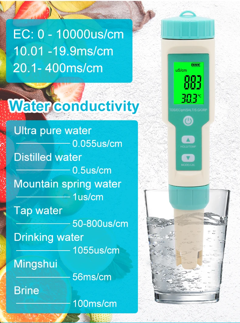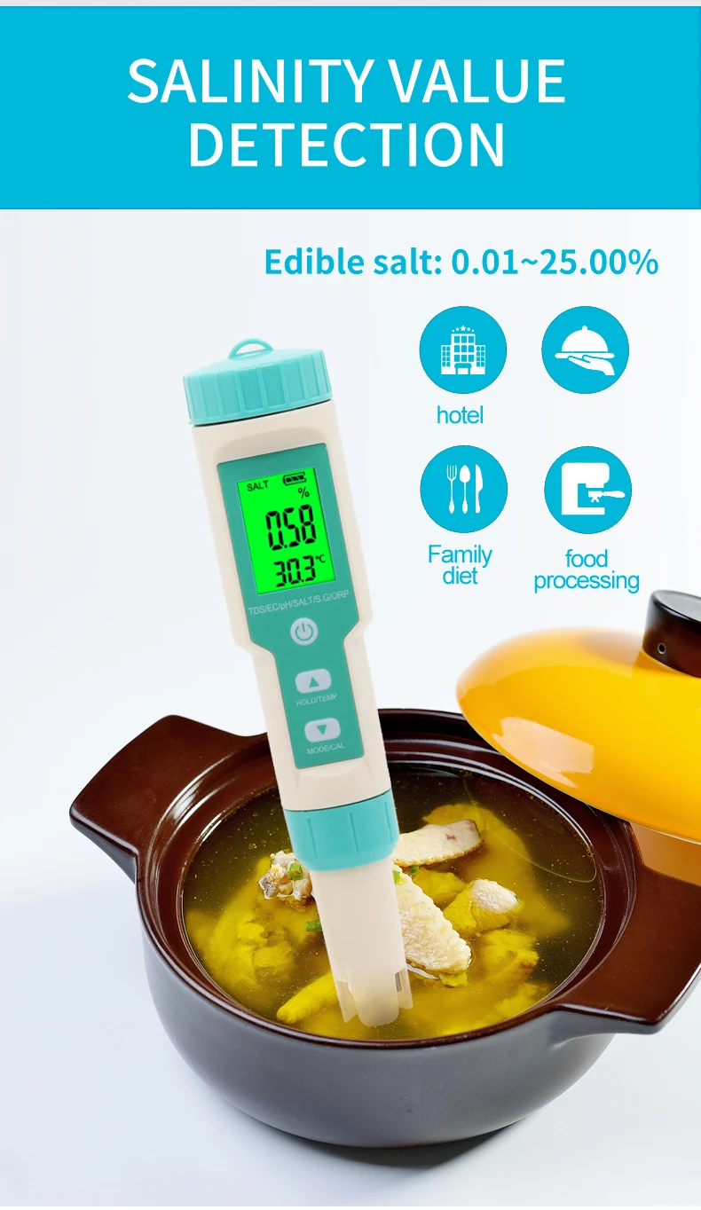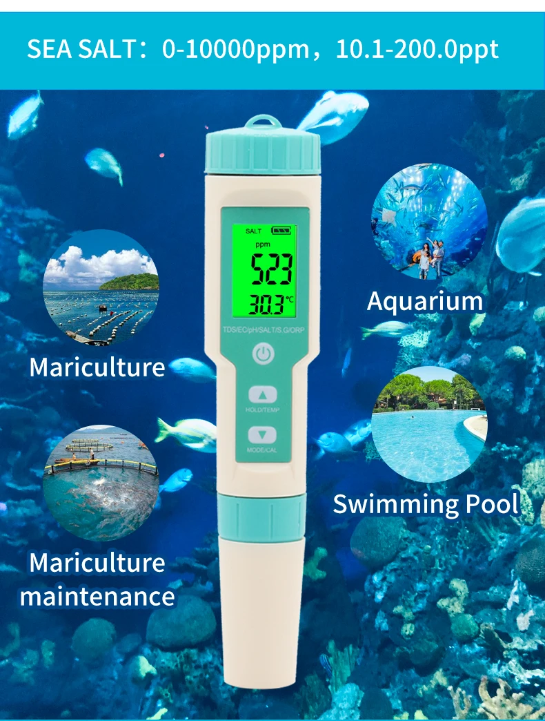 Измеряет PH,TDS,TEMP,EC,Salinity,SG,ORP.