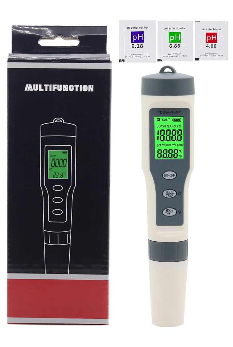 • Диапазон измерения: pH: 0,00-14.00pH; TDS: 0-19990ppm; EC: 0-19990muS/см