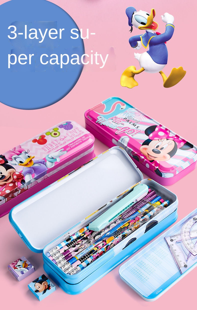 [return package shipping fee] Disney three-layer stationery box primary school student storage box kindergarten pencil bag multifunctional children's pencil box wholesale