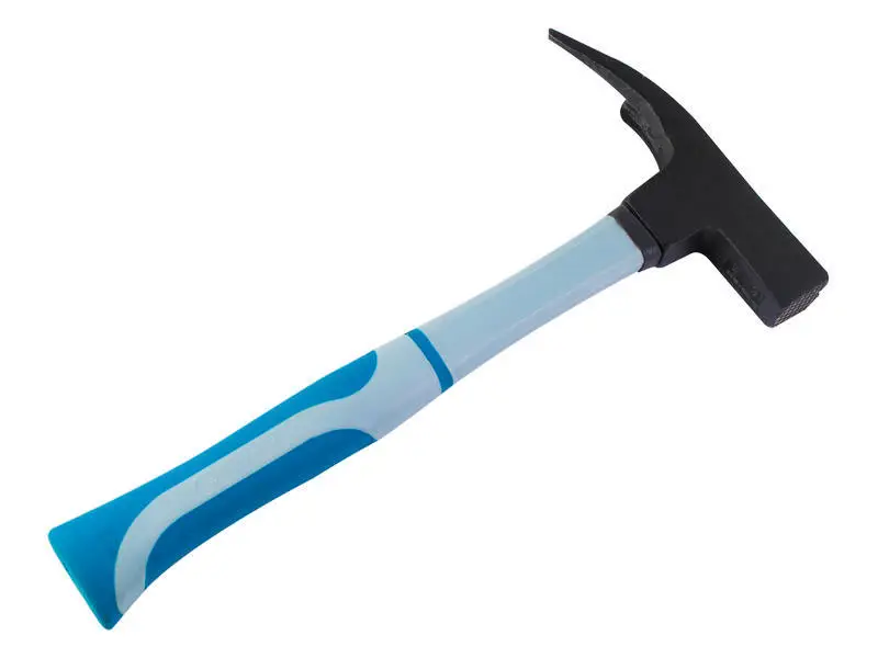 Рифленая головка молотка кованая, закалена и покрыта черным водным лаком, фиберглассовая рукоятка. Специально предусмотренный магнит позволяет производить работы одной рукой. 600 г