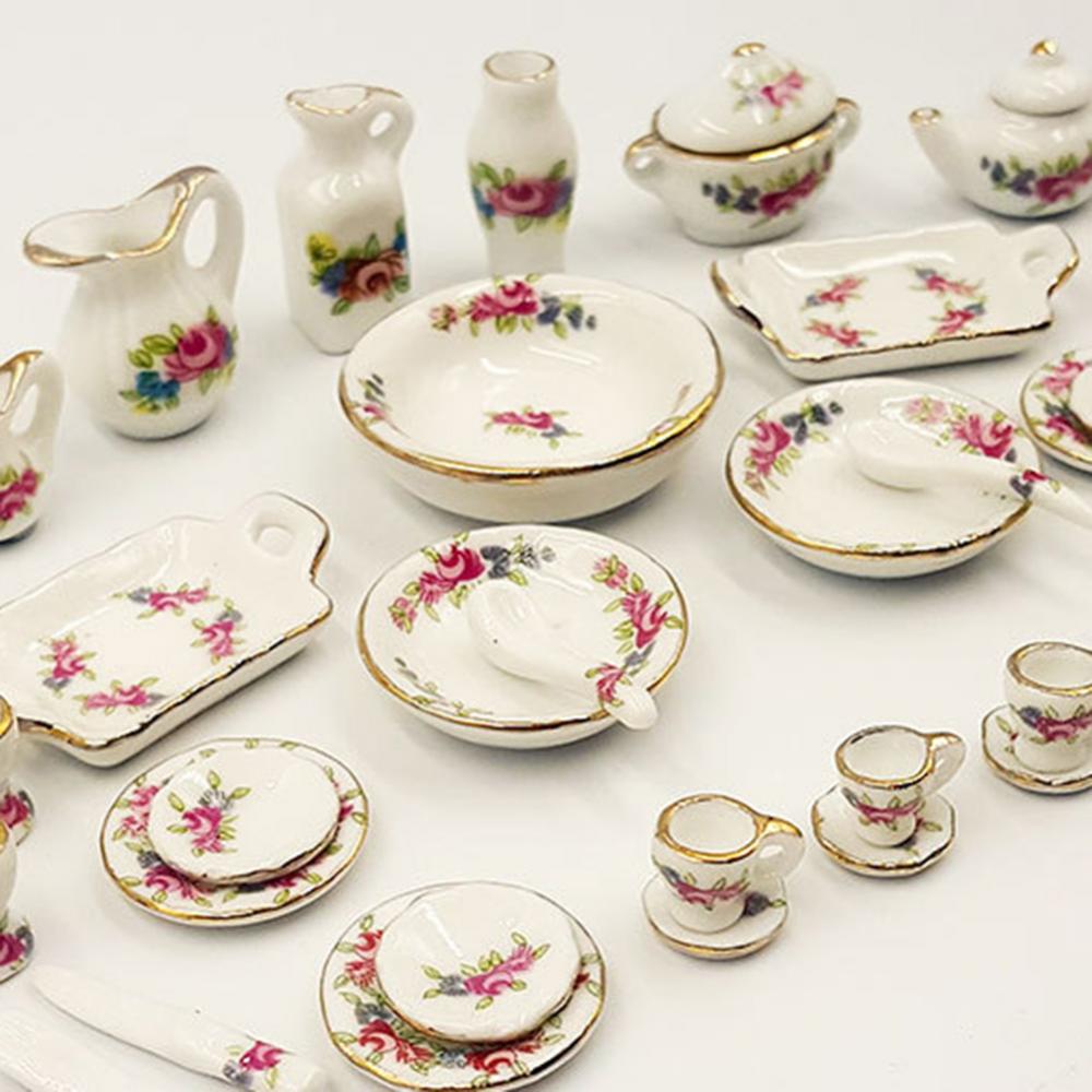 Чайный горшок блюдо чашки Кукольный дом Аксессуары Детская мини керамическая посуда DIY игрушка