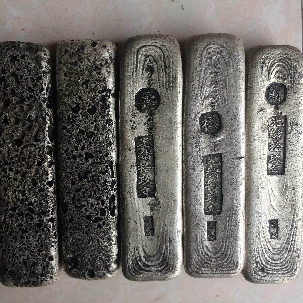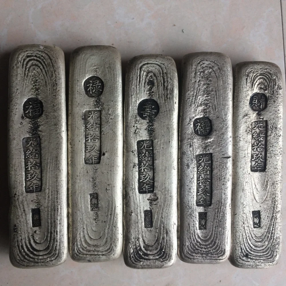 5 шт. антикварная китайская Серебряная слитка "FU, XI, CAI, LU,SHOU" Серебряная слитка коллекция для украшения дома металлические изделия