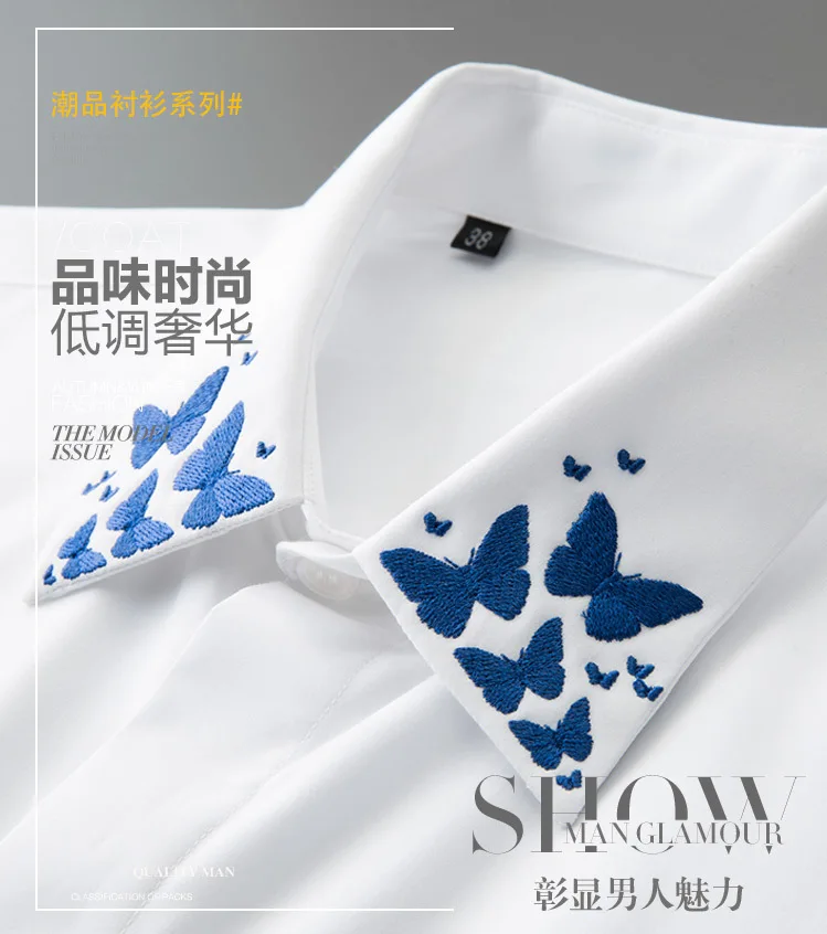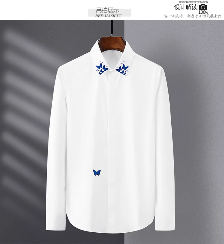 Название:Брендовая деловая Мужская рубашка с принтом бабочки homme повседневные мужские рубашки с длинным рукавом Camisa masculina размера плюс M-4XL