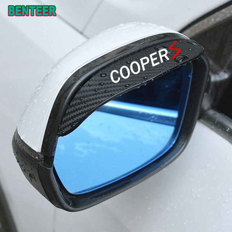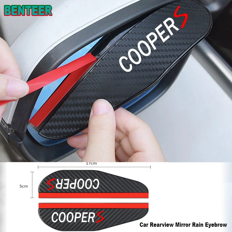 2pcs Carbon fiber Car Rearview Mirror Rain Eyebrow Sticker For MINI S Coopers countryman R60 R56 F55 F56 Auto Accessories
