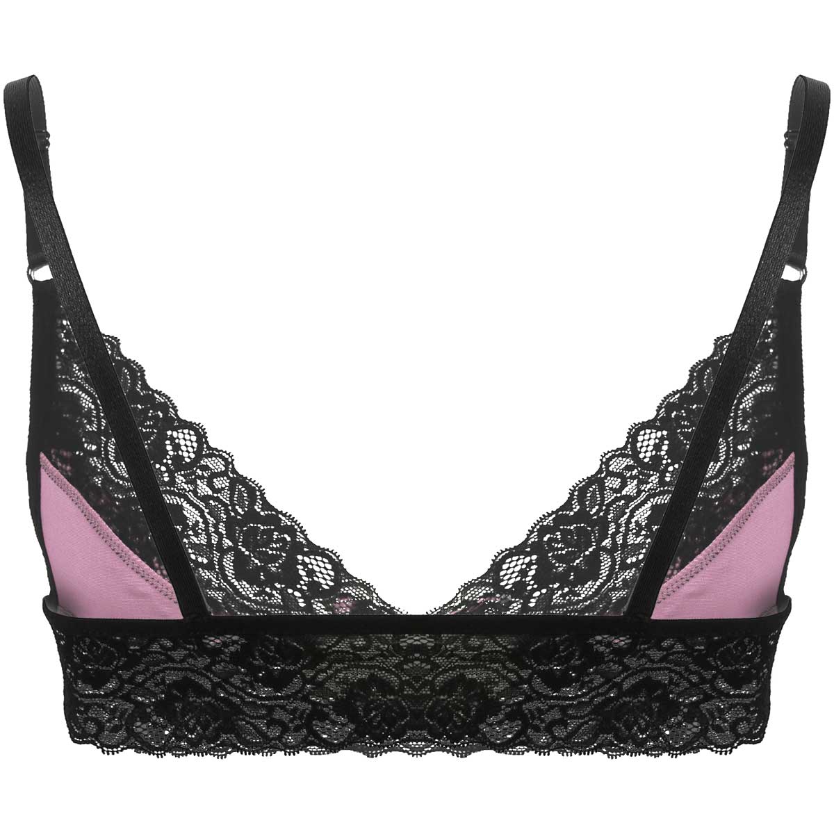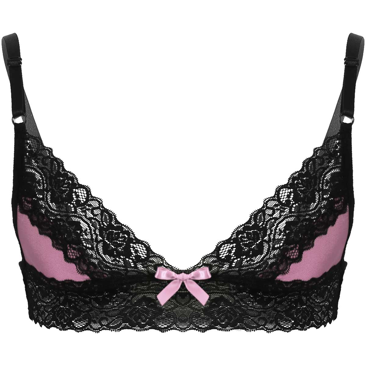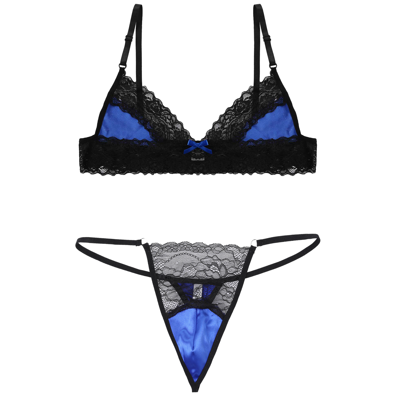 Регулируемые бретельки-спагетти, Треугольные чашечки с цветочной кружевной отделкой, застежка-липучка.