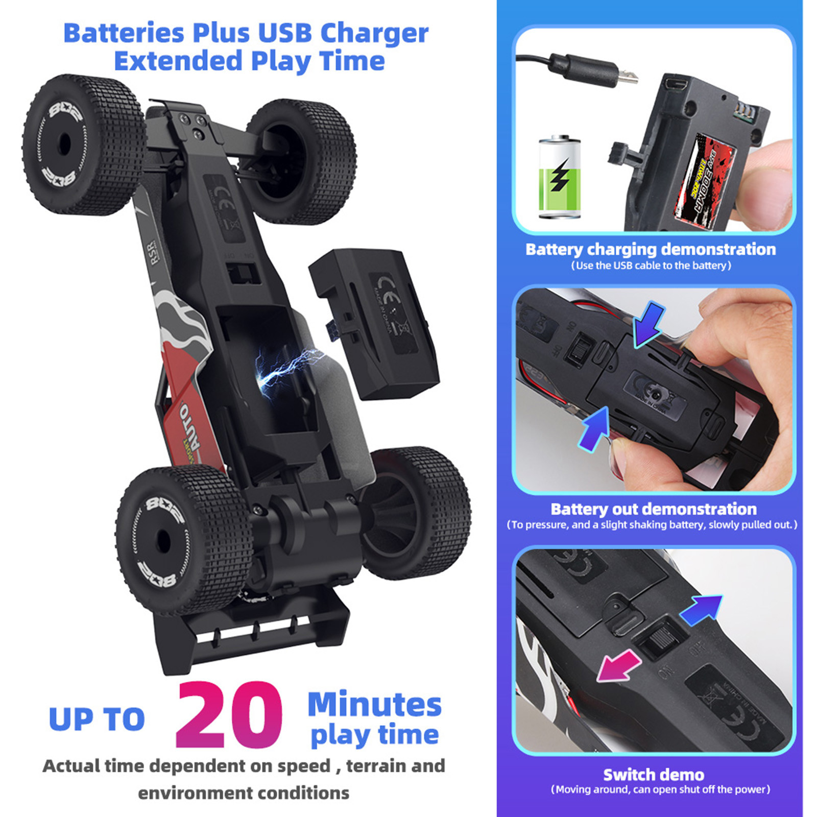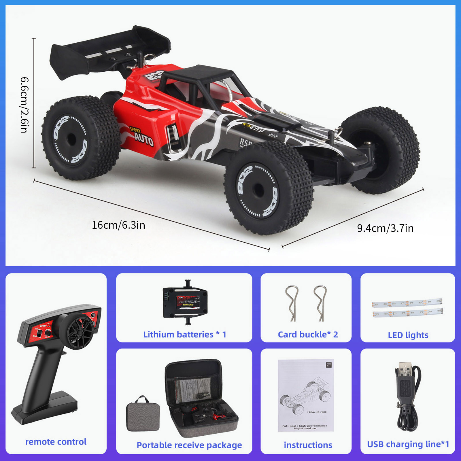 - Автомобильный аккумулятор: 3,7 V 300mah