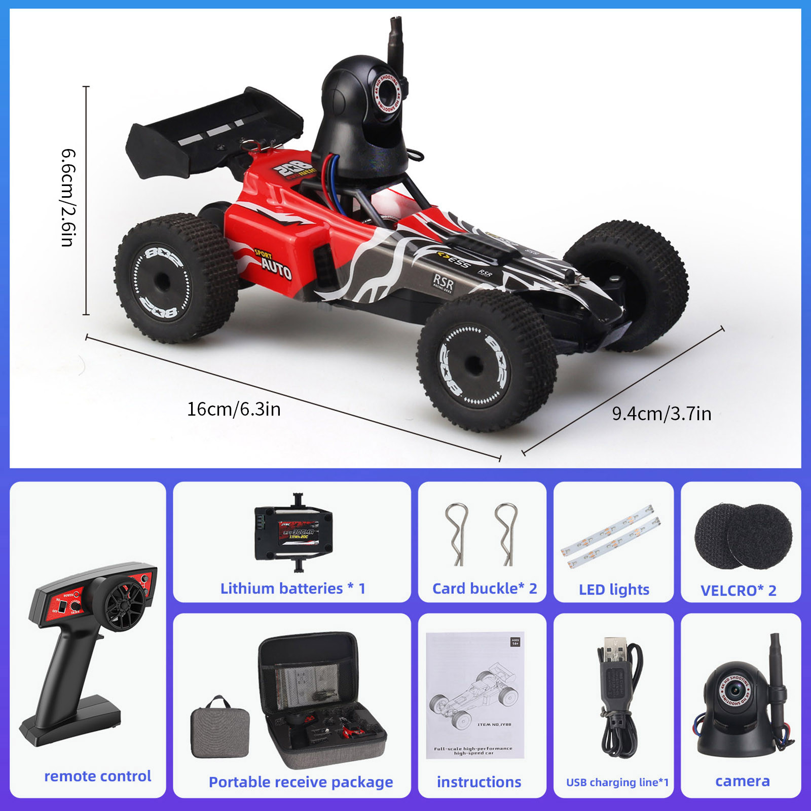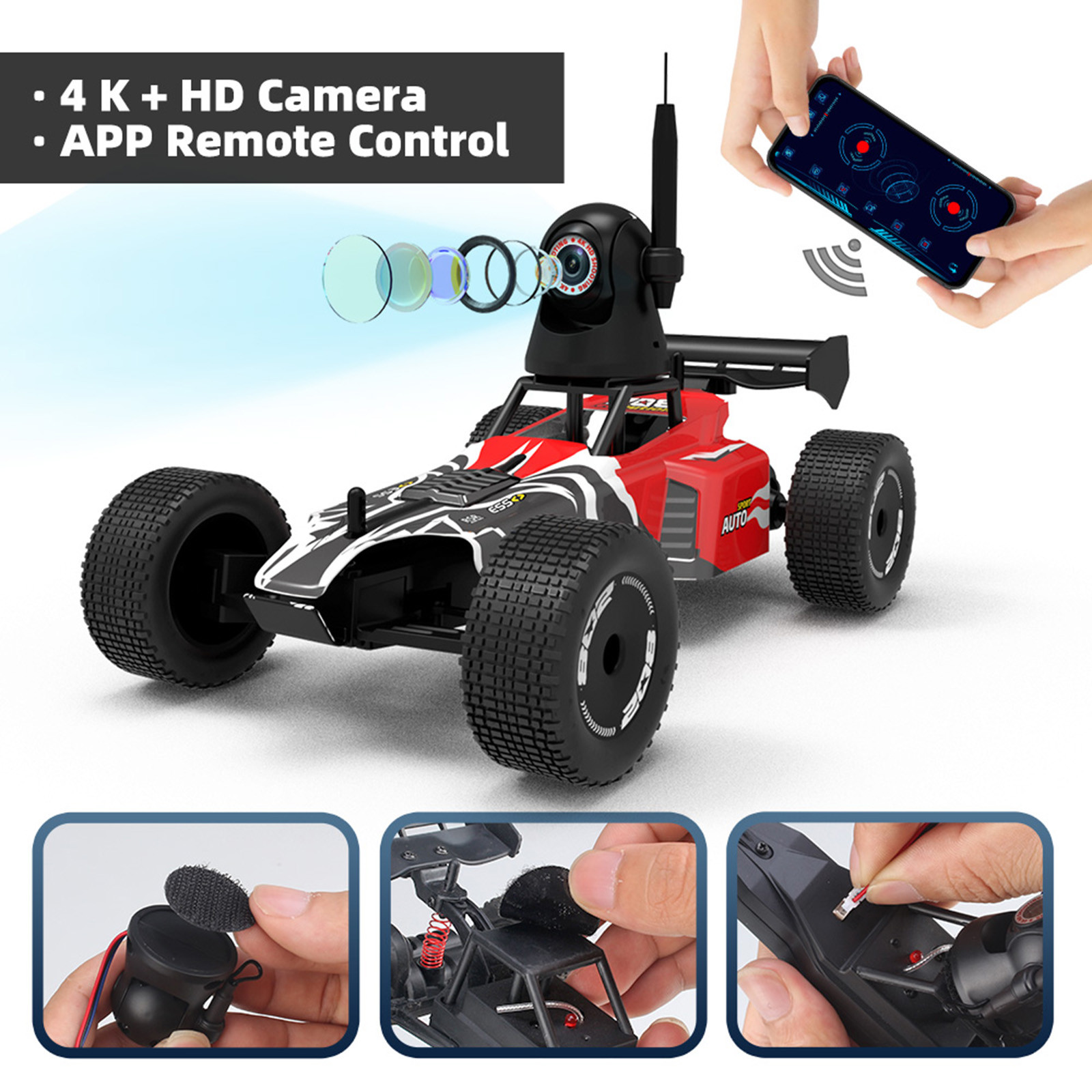 - 8. Он может быть оснащен широкоугольной камерой высокой четкости 4K. При ношении очков VR вы можете почувствовать, что автомобиль превысил скорость в режиме высокой/низкой скорости под первым углом обзора. Его также можно управлять через мобильный телефон.