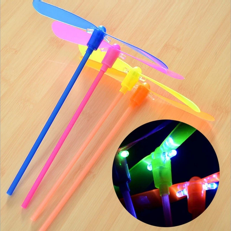 Легко лететь: цветной и профессиональный дизайн, содержит 10 штук случайного цвета бамбуковая игрушка стрекоза, носить с собой светильник из весового материала позволяет легко лететь, один поворот, чтобы начать игрушку, легко управлять, носить с ослепительным светодиодный светильник во время игры, чтобы сделать его более привлекательным и популярным в уличной игре и ночью.