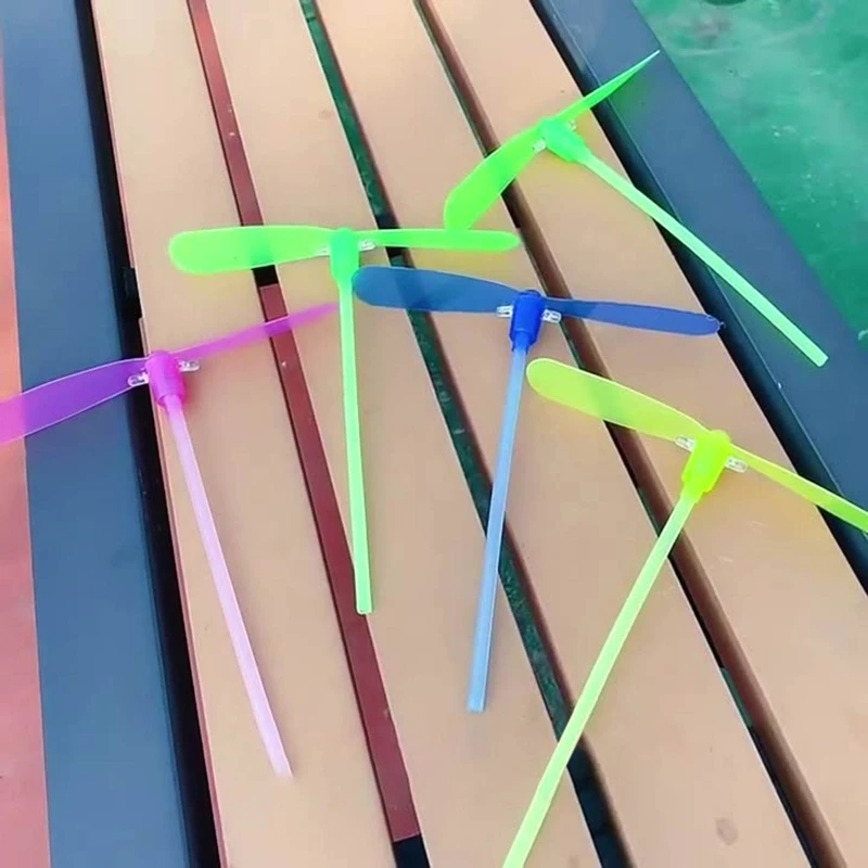 Классическая бамбуковая игрушка Стрекоза: Классическая бамбуковая стрекоза, летающая игрушка, натирает палку так сильно, как вы можете, чтобы активная игрушка вылетела, и парит светодиодный светильник, вращается в небе, И наконец упасть.