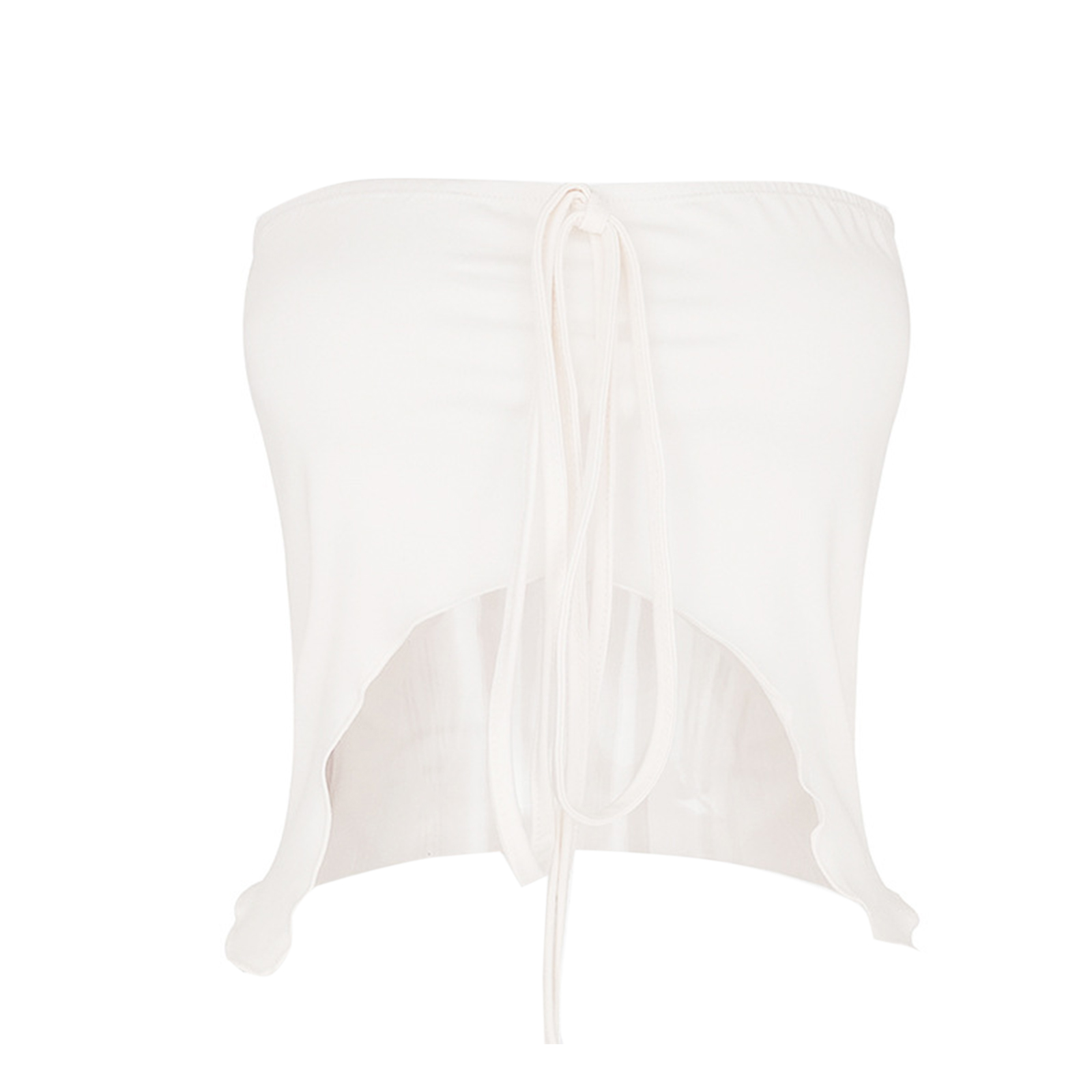 Женский однотонный топ-бандо с открытыми плечами спереди, Асимметричный топ без рукавов с вырезами