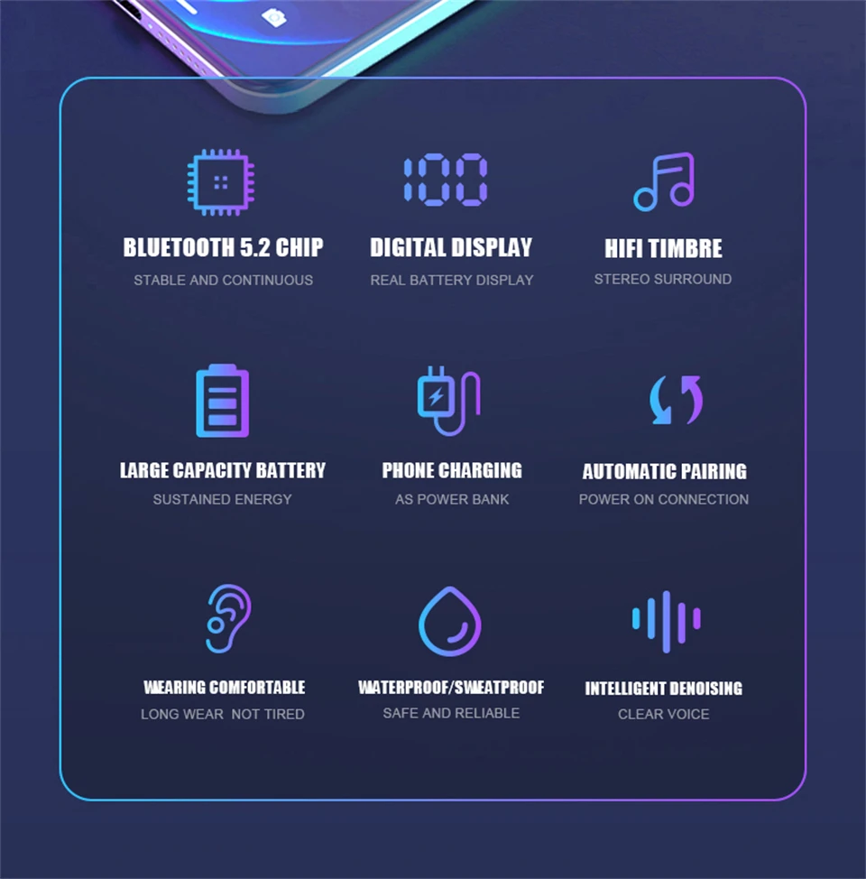 TWS Bluetooth 5,2 наушники для зарядки беспроводные наушники 9D стерео спортивные водонепроницаемые наушники с шумоподавлением гарнитура с микрофоном