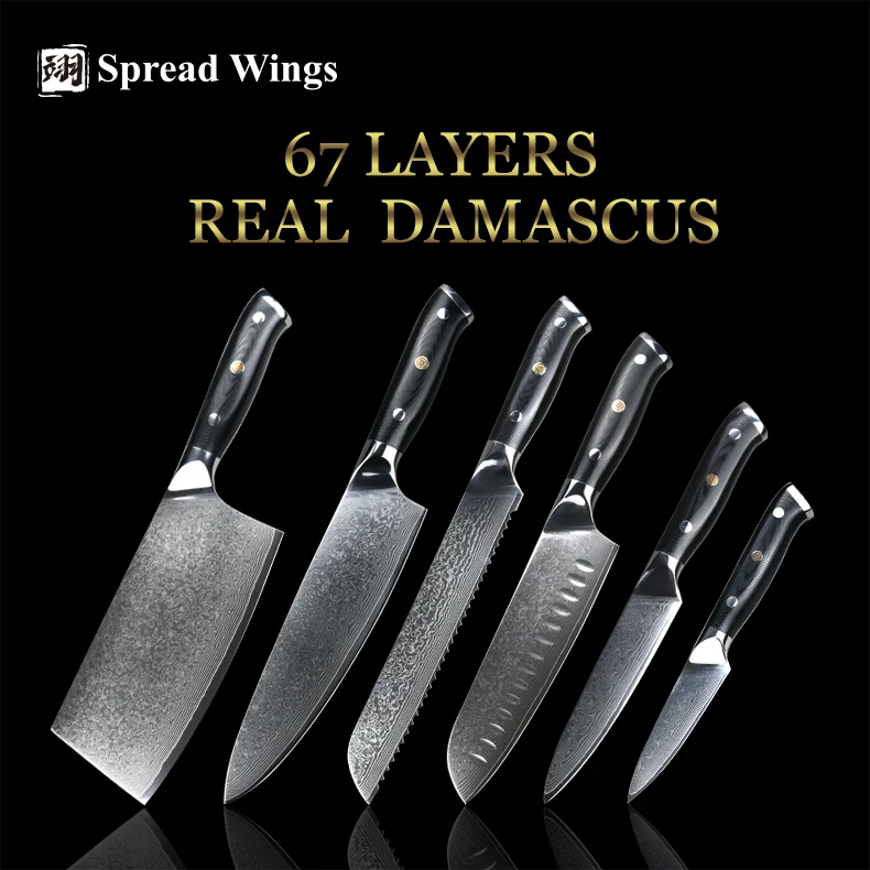 【Супер Sharp Edge】-67-слой японский Дамасская супер сталь с полированной поверхностью поверхности. Устойчивый к коррозии и прочный. Изогнутые края более острые, более прочные и острые. Он может быть стабилизирован при 60 ± 2 HRC, с