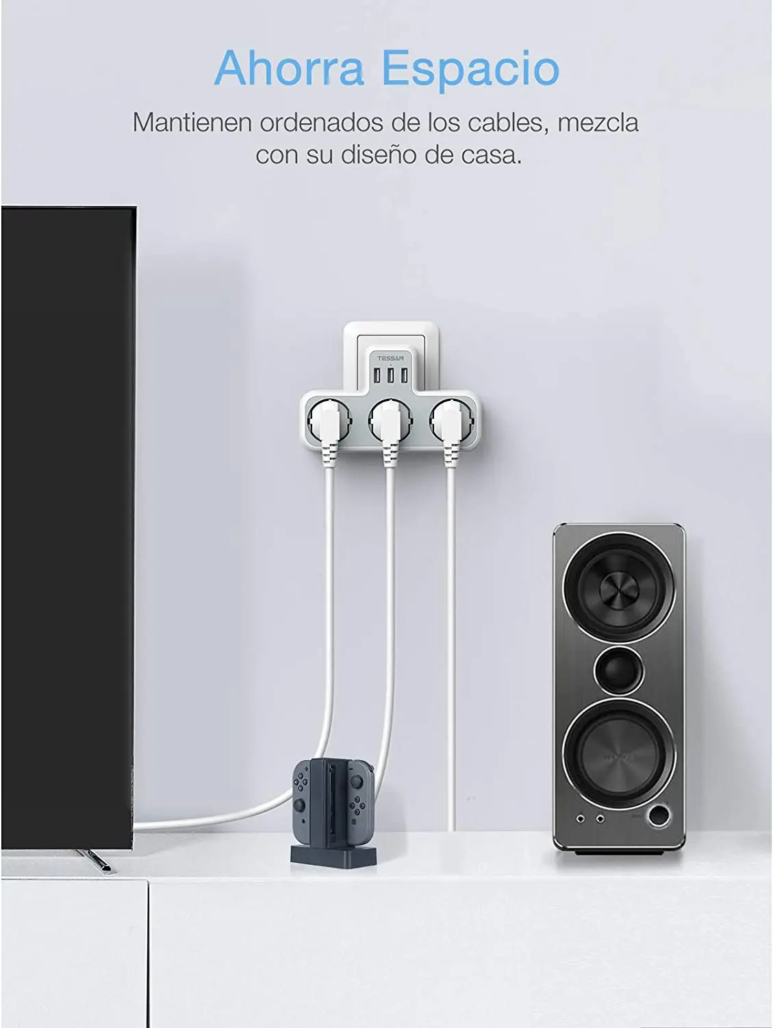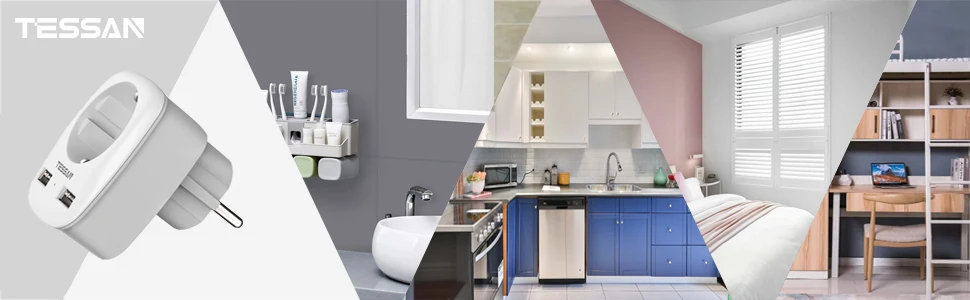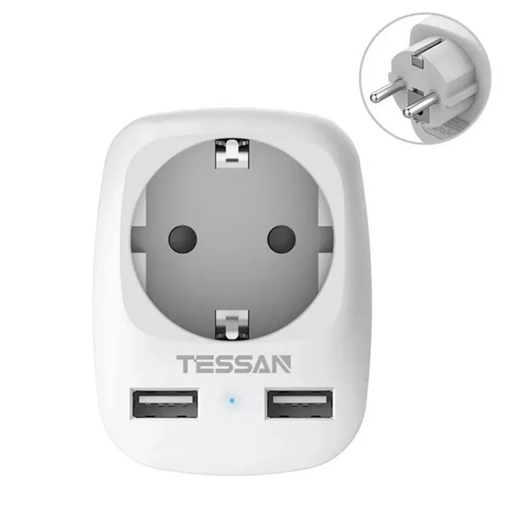 1 розетка + 2 порта USB: Зарядное устройство TESSAN plug USB очень подходит для подключения к обычной розетке, подключенной к земле. Просто подключите к любому Евророзетка (4,8 мм), продлить его в качестве AC штекер и двойной usb-разъем, экономя вам хлопот подключения во многих USB зарядные устройства. Беспроводная полоса питания может значительно сэкономить ваше пространство и сохранить ваши вещи в порядке.