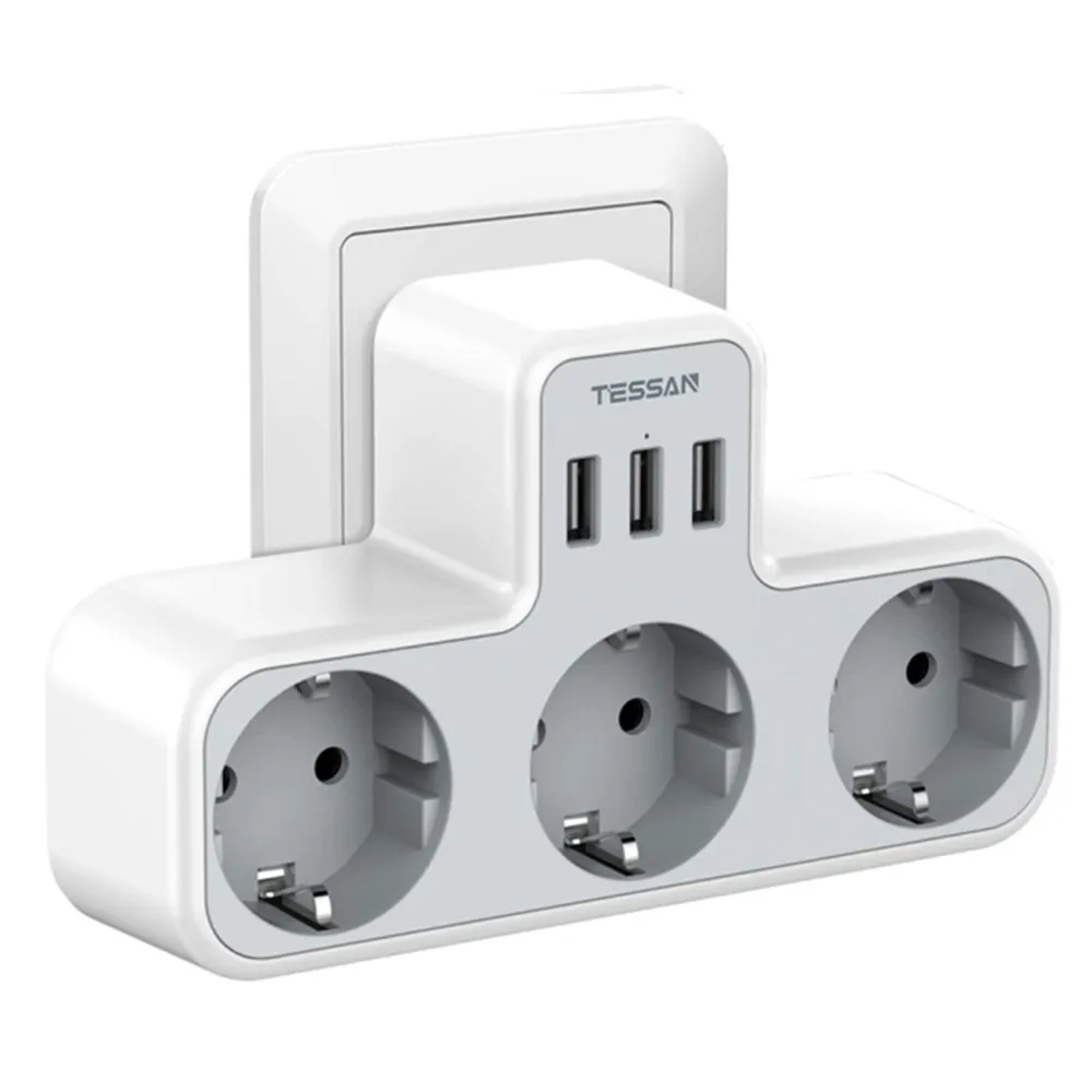 TESSAN Ladron USB штепсельные вилки, несколько USB штепсельных вилок с 3 штепсельными вилками Schuko 3 USB порта, USB настенный адаптер для офиса, кухни, совместим с мобильными телефонами, тройная USB настенная вилка