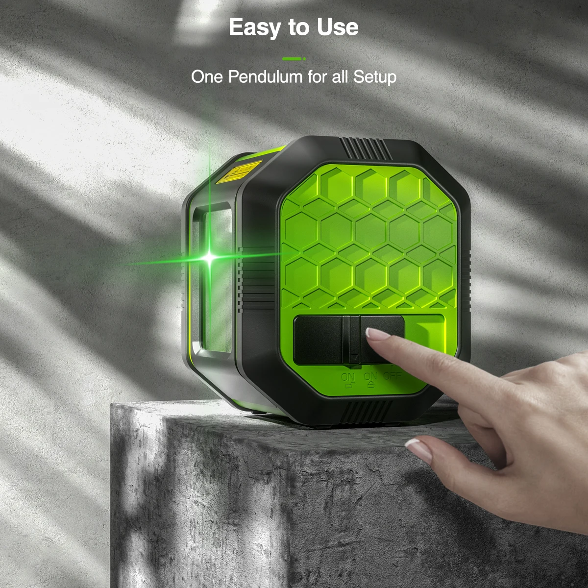 【Два режима использования 】Mode режим самонивелирования: разблокировка маятника, режим самонивелирования включен. Лазерный луч будет мигать непрерывно при 2 Гц, когда инструмент находится за пределами диапазона самонивелирования (± 4 °).Manual ручной режим: заблокируйте маятник, вы можете (использовать штатив или другой кронштейн) разместить лазерный инструмент под разными углами для проекта неуровняПрямой лазерЛинии. Разрезы могут быть проецированы. Лазерный луч мигнет каждые 3-5 секунд, чтобы напомнить вам, что сейчас он не самонивелирующийся.【Простота в эксплуатации 】:Простой в использовании, один переключатель; Просто сдвиньте маятник, чтобы разблокировать положение инструмент мгновенно проецирует совершенно прямой лазерный крест на стене. Этот скользящий переключатель делает FC011G подходящим инструментом для тех, кто может использовать, даже тех, кто не имеет большого опыта работы DIY.