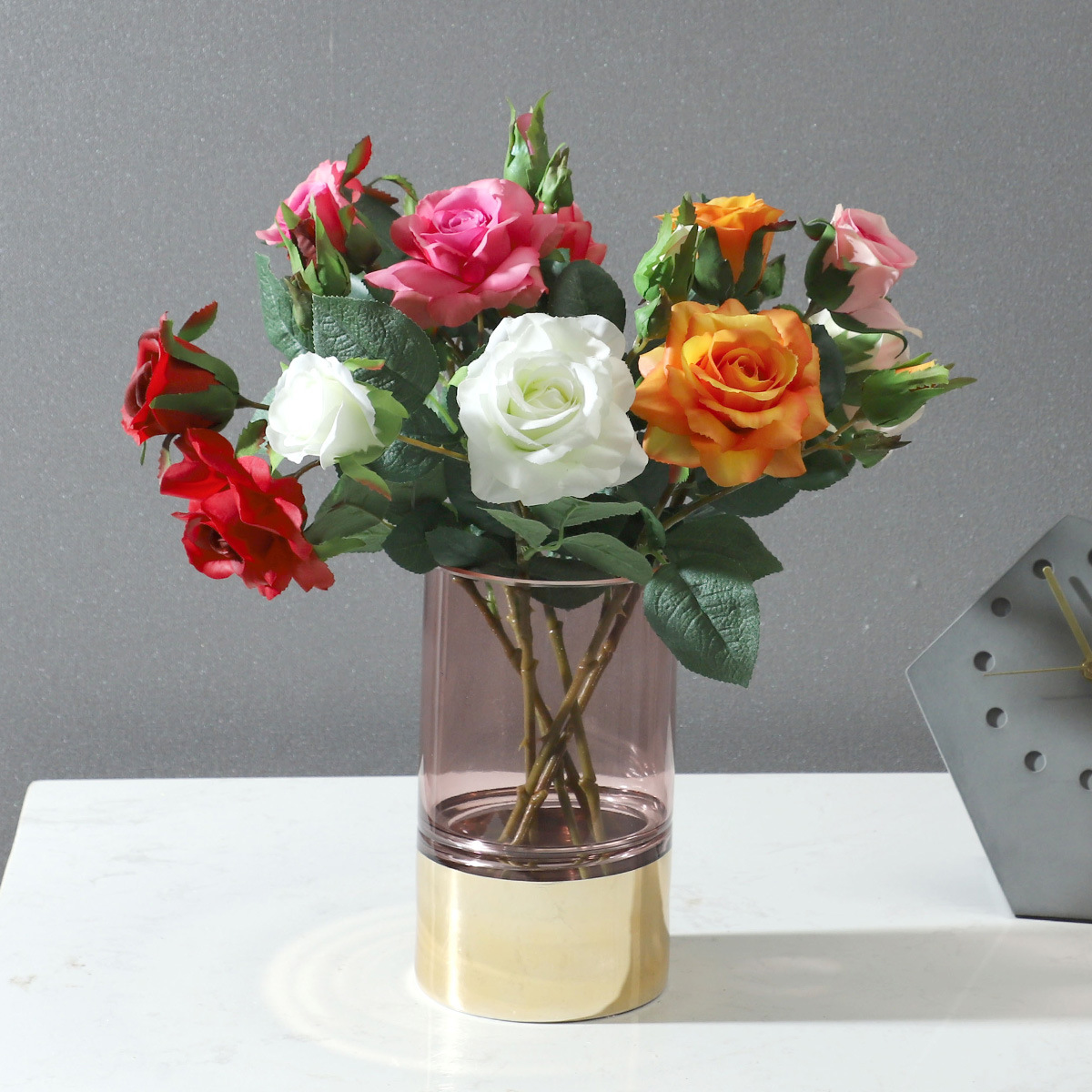 Brand NameGreen AloesOriginMainland ChinaClassificationArtificial FlowersTypeRoseMaterialLatexis_customizedNoStyleFlowerOccasionWeddingFlower StyleFlower BranchMeasurement unit100000015Each pack1Materiallatex flower,silk leaves,plastic stem.length40cmcolorpink, orange, purple powder, bright red, rose red, whiteflower1pcs 9cm,1pcs 5cm,1pcs buds.