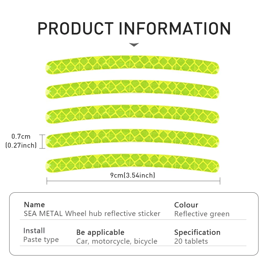 20 шт. подшипник ступицы колеса для автомобиля Светоотражающая Стикеры светоотрающей полосой Предупреждение светящаяся лента подходит для авто мотоцикл электромобиль велосипед