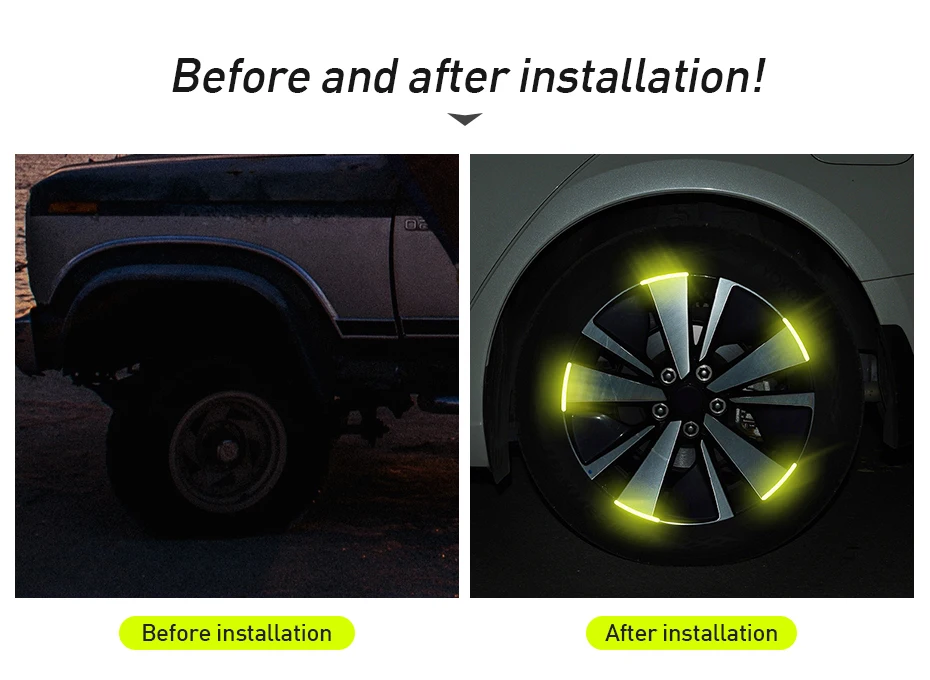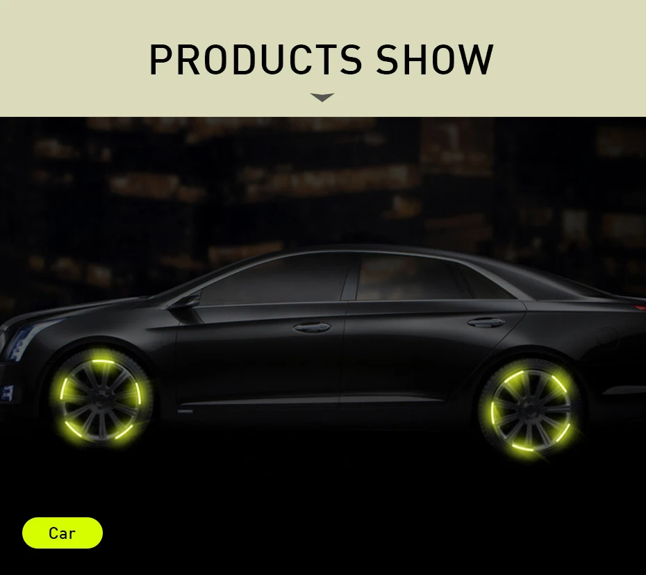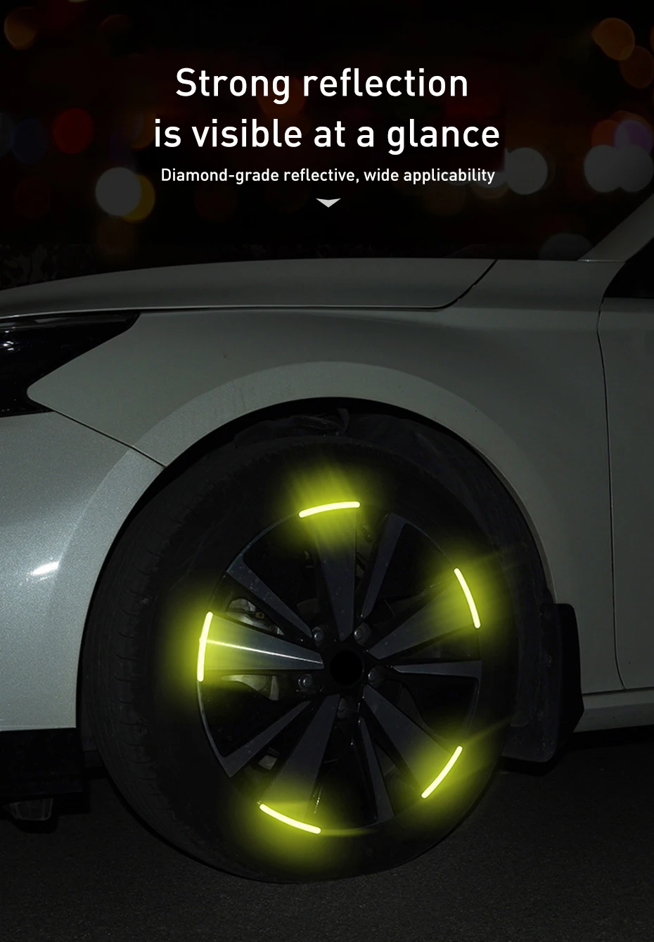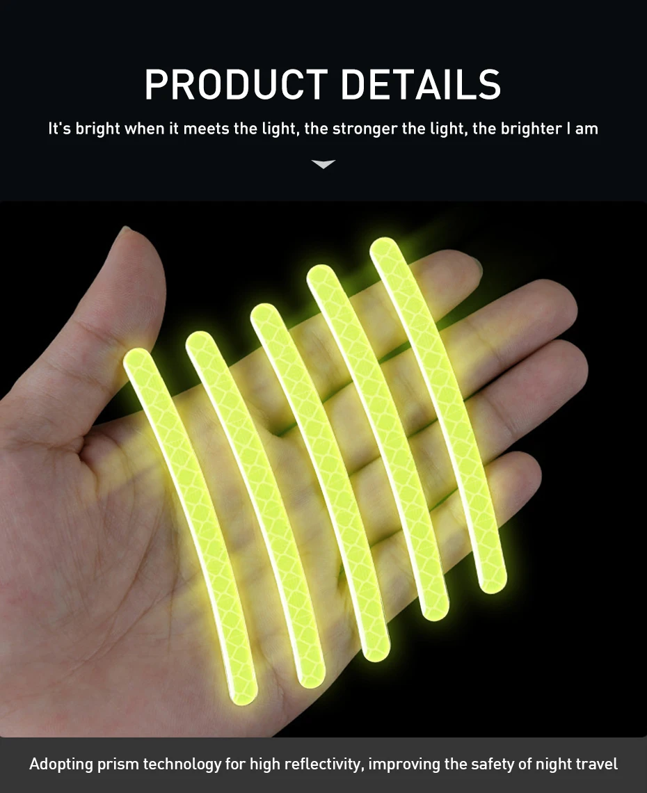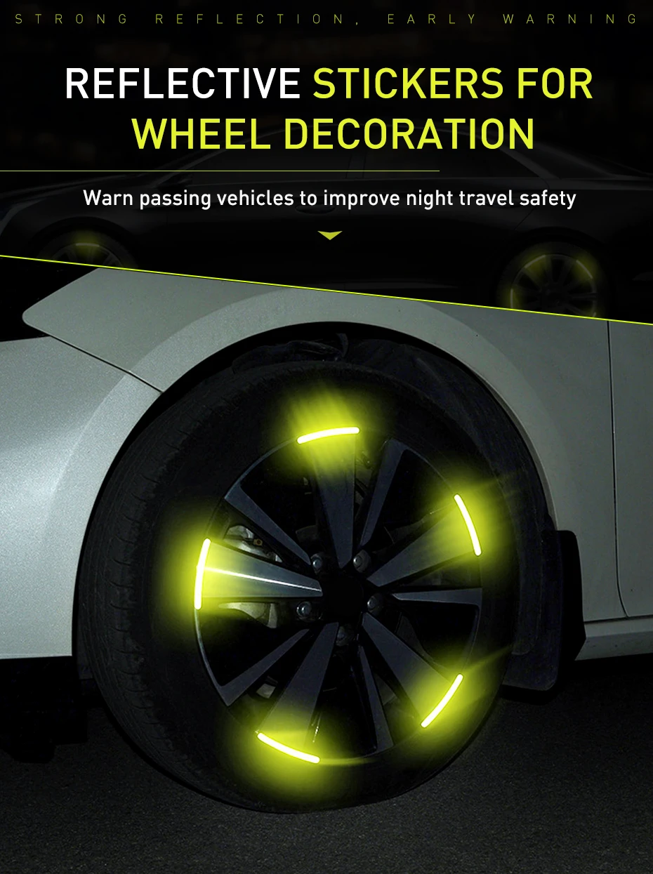 1. Светоотражающие наклейки для ступицы колеса: ночью или в темной среде, эти светоотражающие наклейки высокой видимости выделяются на дороге, отражающие светильник в сторону водителей, заметны и напоминают им, чтобы они сохраняли свое расстояние, повышение безопасности вождения.
