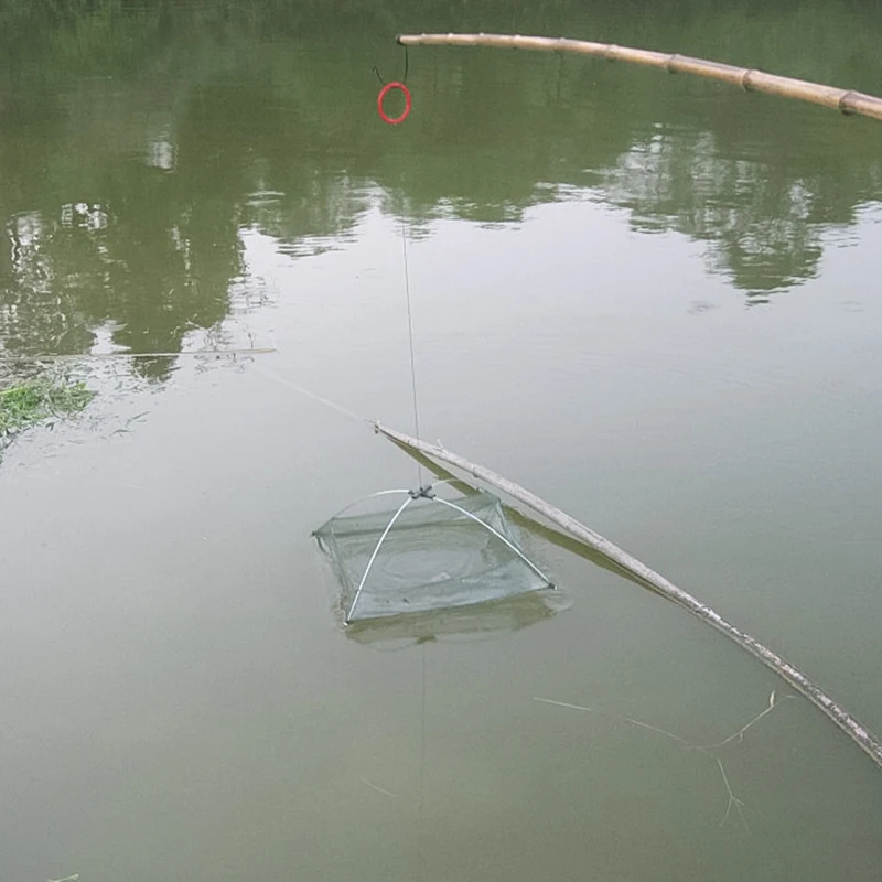 Fishing Net Folding Net Nylon Fishing Net Bait Casting Dip Crab Shrimp Net Material: nylon, metal Size: 80 * 80 cm (length * width) Package included: 1x fishing net Feature: Umbrella crab trap bait cast bait fishing net Convenient for your fishing The bait bag is installed in the center of the net and is used to place the bait to attract the target. Put some bait into the middle bait bag, sink the fishing net into the river, and then put some other bait in the river above the net to make more fish and lobster swim into the trap ears. When many fish swim above the canal net, remove the net from the river.