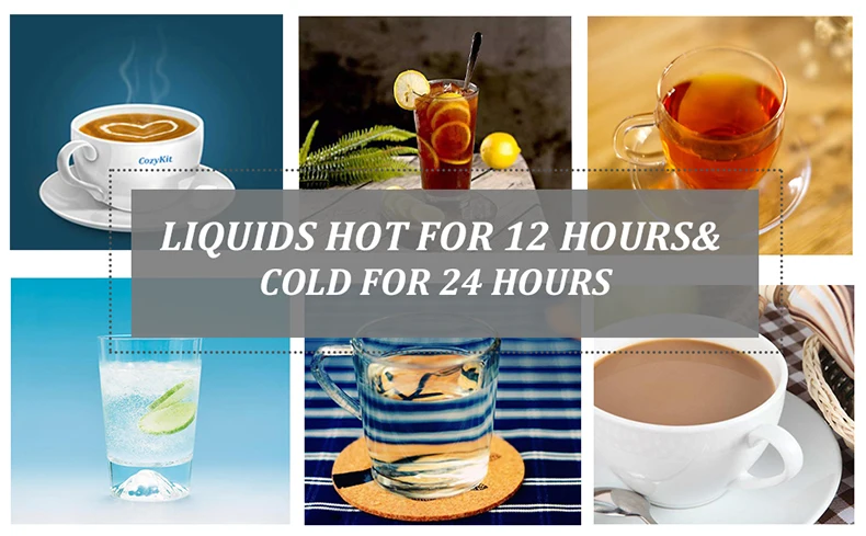 Двухстенная вакуумная изоляция обеспечивает максимальное сохранение температуры. Сохраняет ваш напиток горячим до 12 часов или холодным до 24 часов.